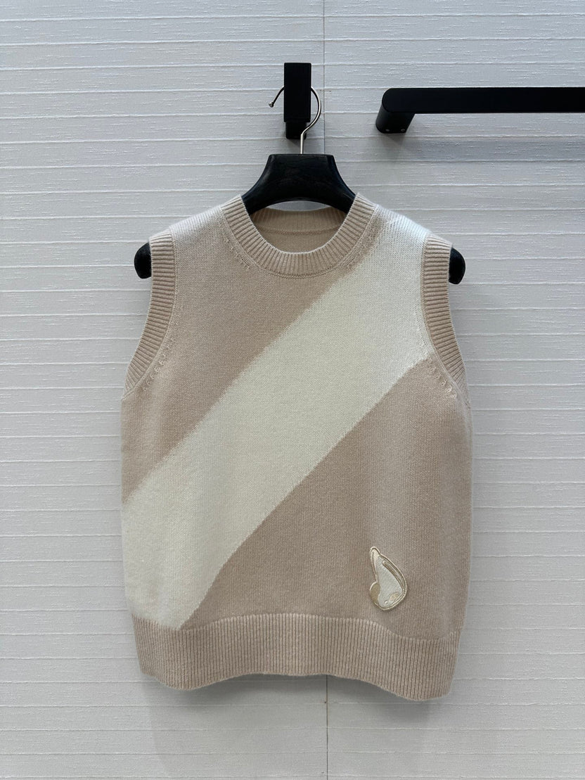 HM Embroidered Logo Vest in Beige and White Cashmere