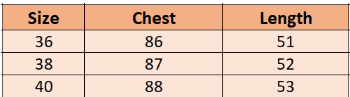 - Size : 36, 38, 40