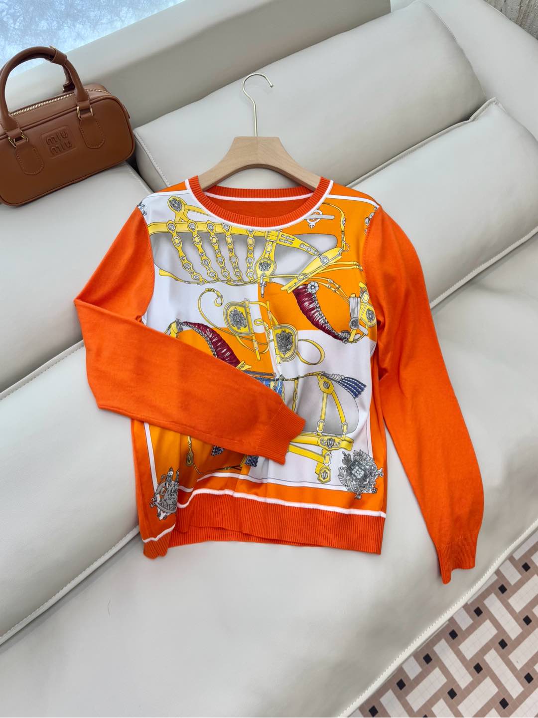 Hm Long Sleeve Knit Sweater Orange Silk