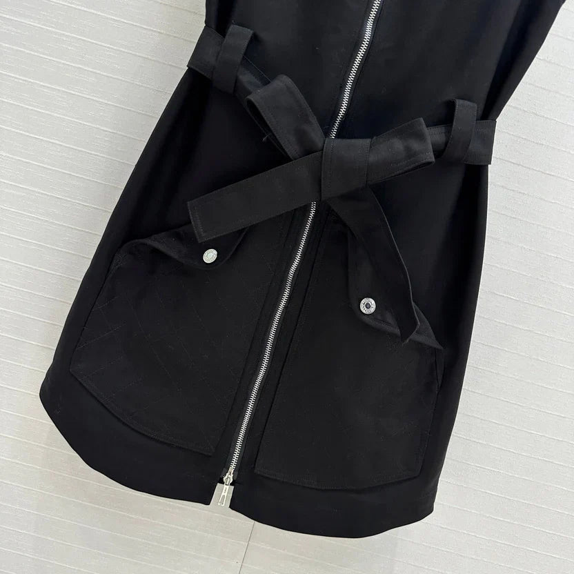 HM Majia Zipped Sleeveless Dress in Black Cotton