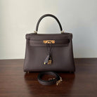 HM Kelly 25cm Chocolate Togo Leather Gold Hardware