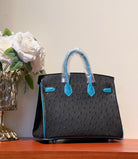 KELLY SELLIER 25 BAG IN BLACK MIX OCEAN BLUE OSTRICH LEATHER (MADE - TO - ODER)