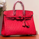 KELLY SELLIER 25 BAG IN CLASSIC RED OSTRICH LEATHER WITH GOLD HARDWARE (MADE - TO - ODER)