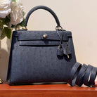 KELLY SELLIER 25 BAG IN PRUSSIAN BLUE OSTRICH LEATHER WITH GOLD HARDWARE (MADE - TO - ODER)