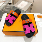 HM CHYPRE SANDAL PINK AND FIRE WITH H-BUCKLE SUEDE