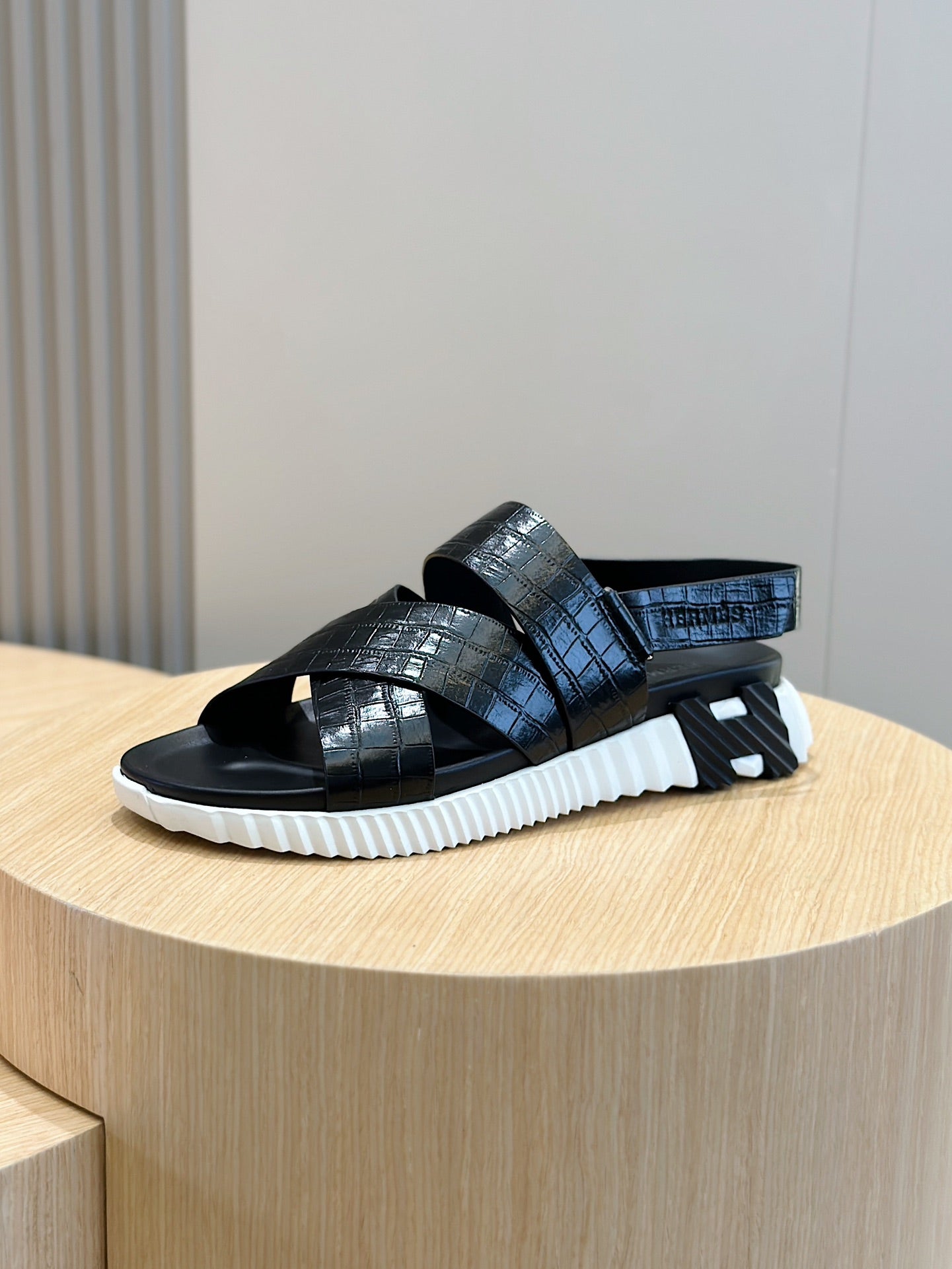 HM ELECTRIC SANDAL BLACK WITH MOTIF CALFSKIN