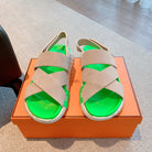 HM ELECTRIC SANDAL PARAKEET AND KHAKI CALFSKIN