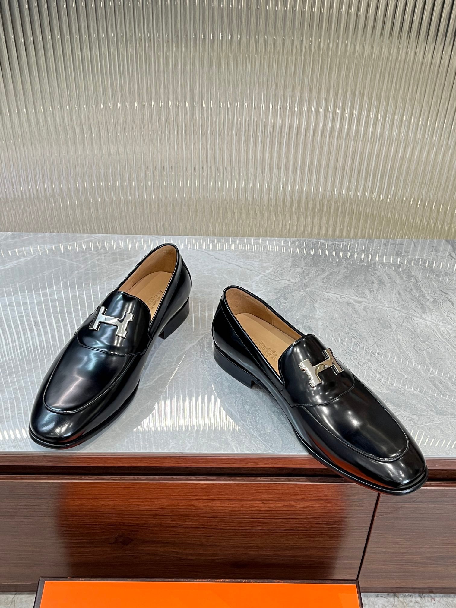 HM H-BUCKLE LOAFER GLOSSY BLACK CALFSKIN