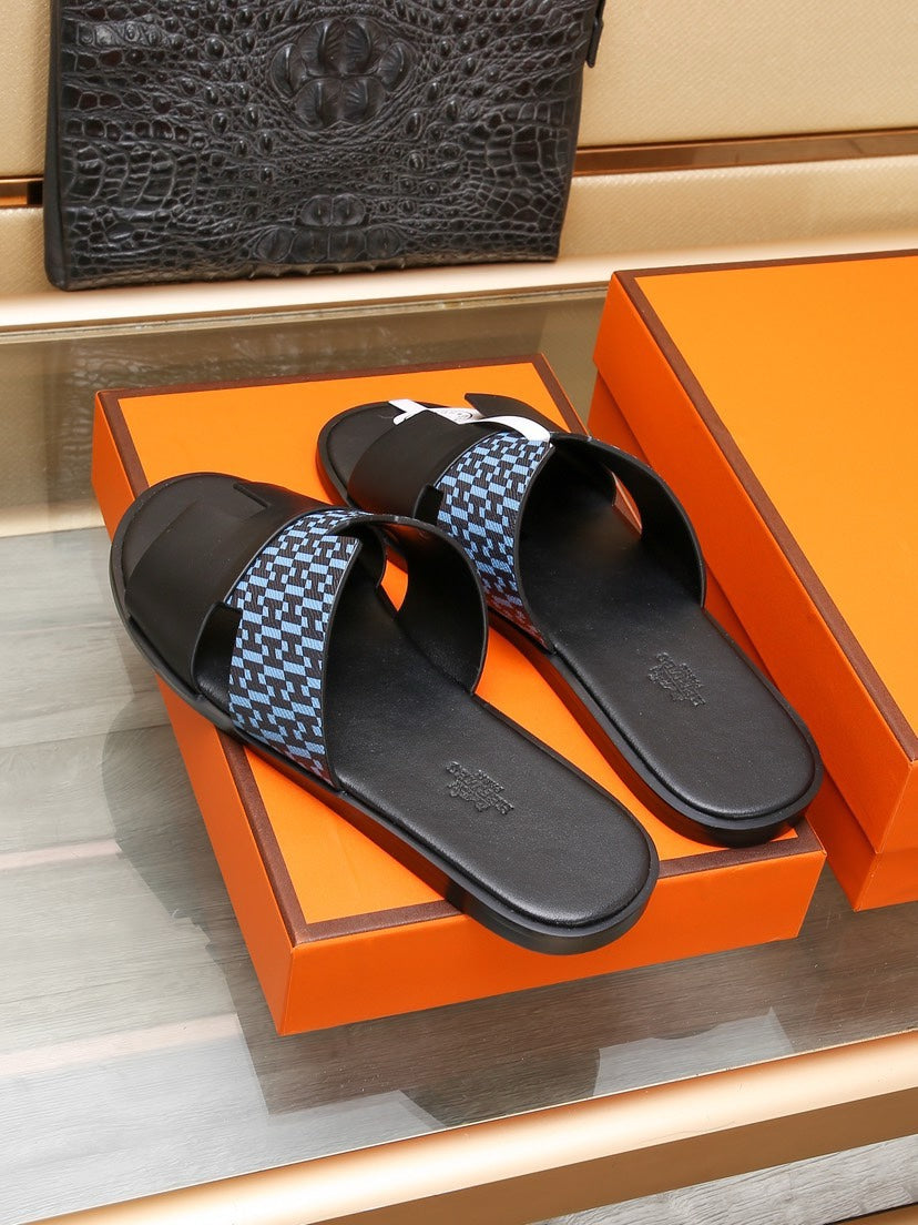 HM IZMIR SANDAL BLACK AND SKY CALFSKIN