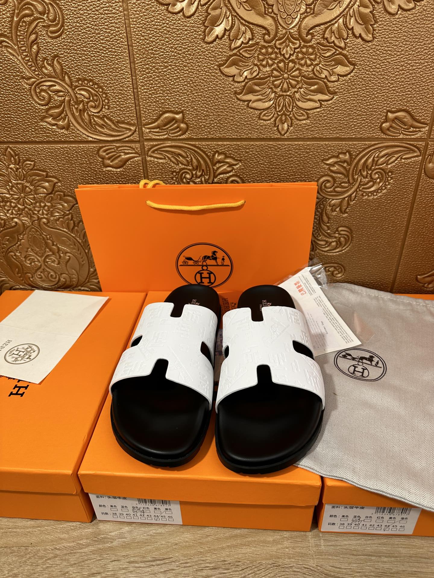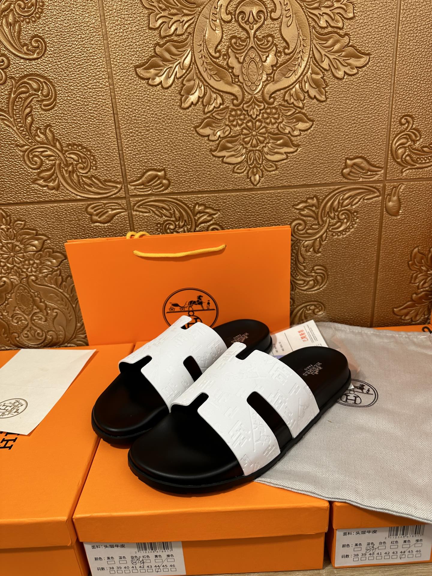 HM IZMIR SLIPPER BLACK AND WHITE CALFSKIN