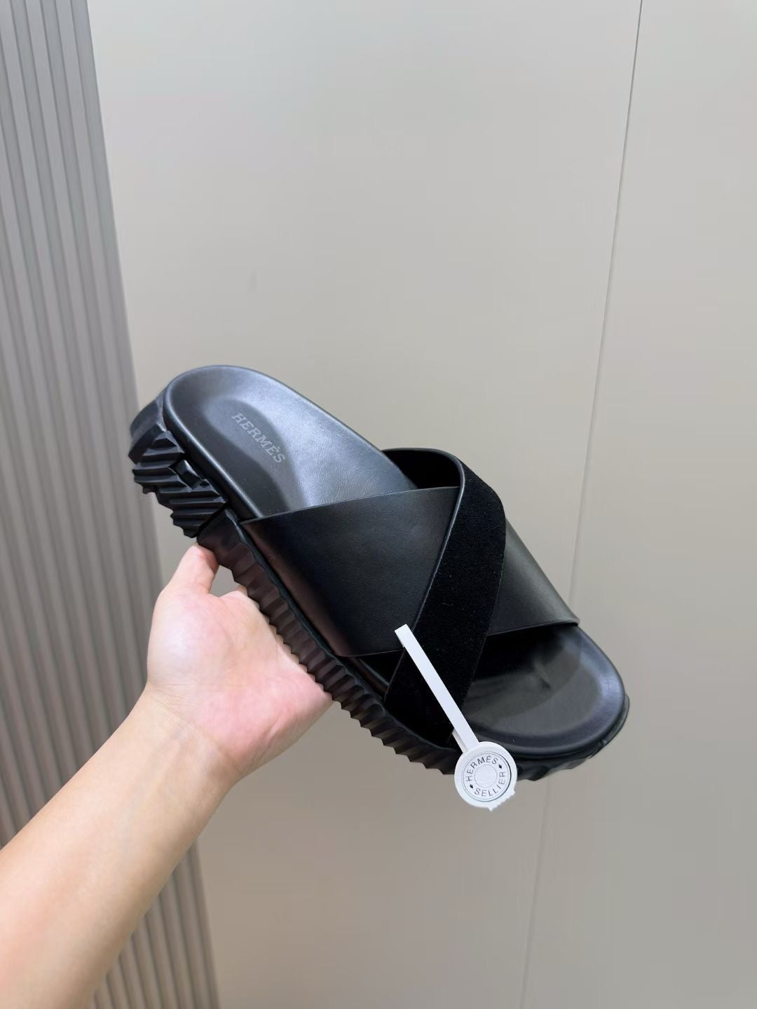 HM Men's Infra Slide Black Cowhide Suede 600000