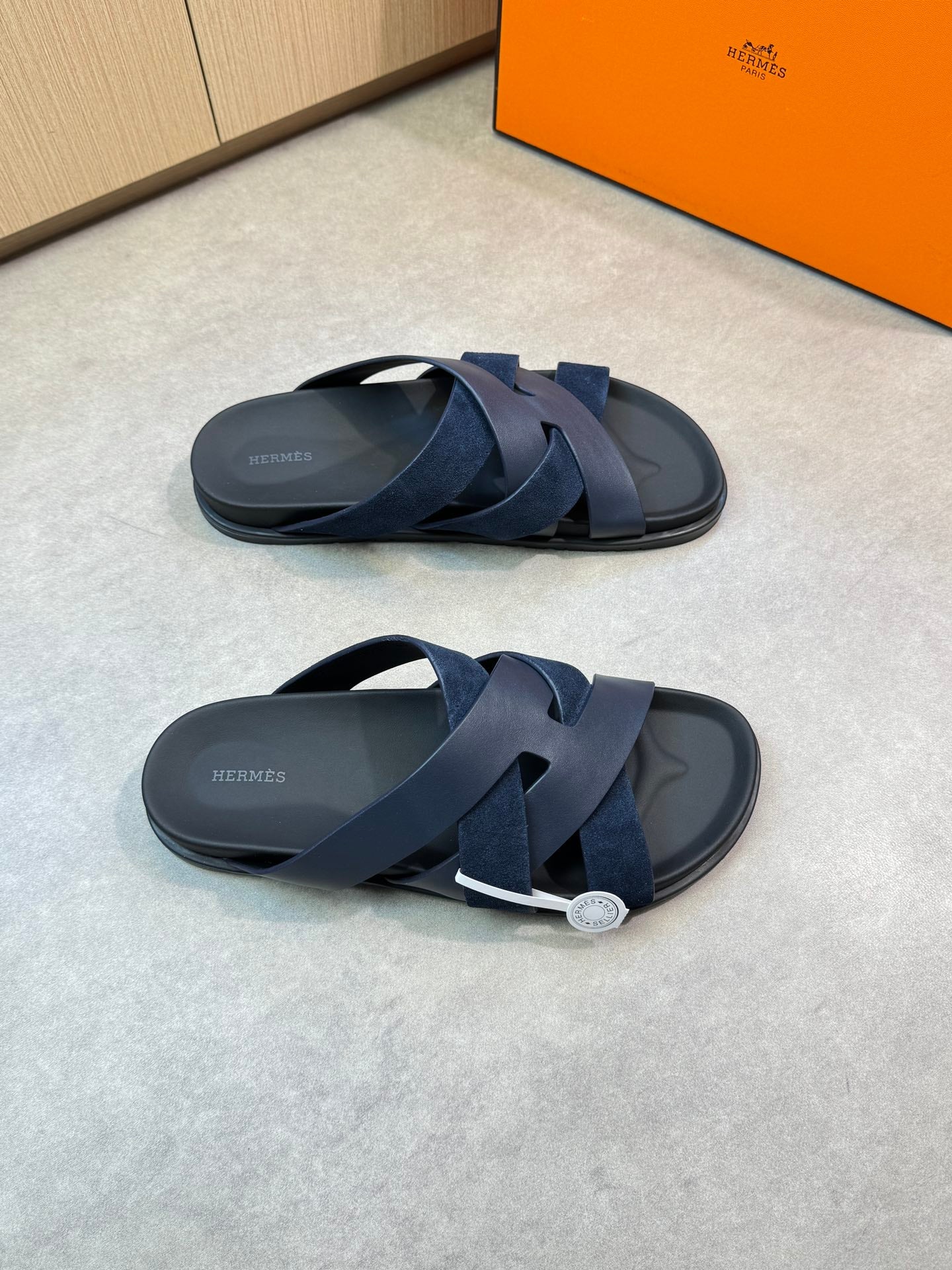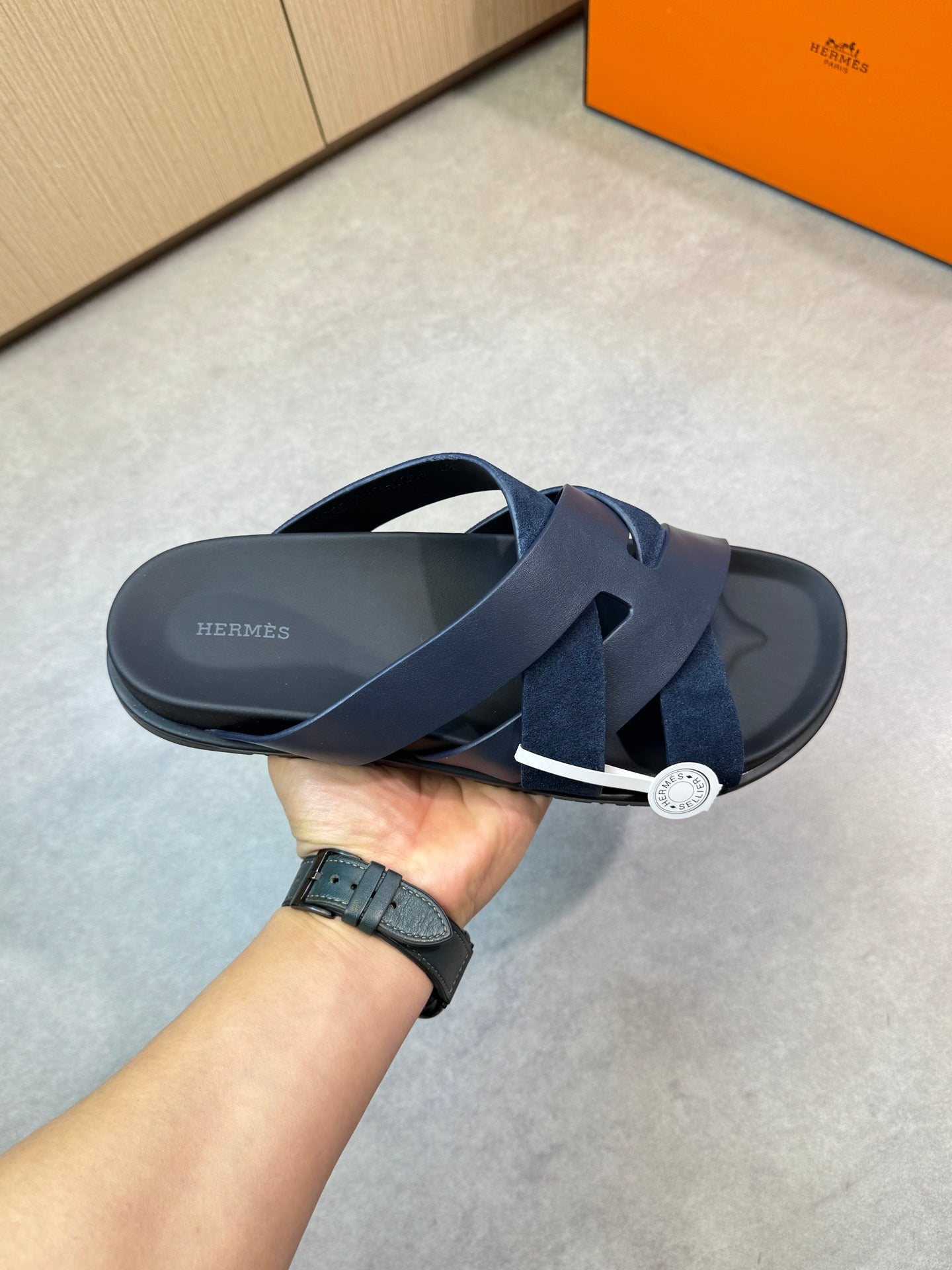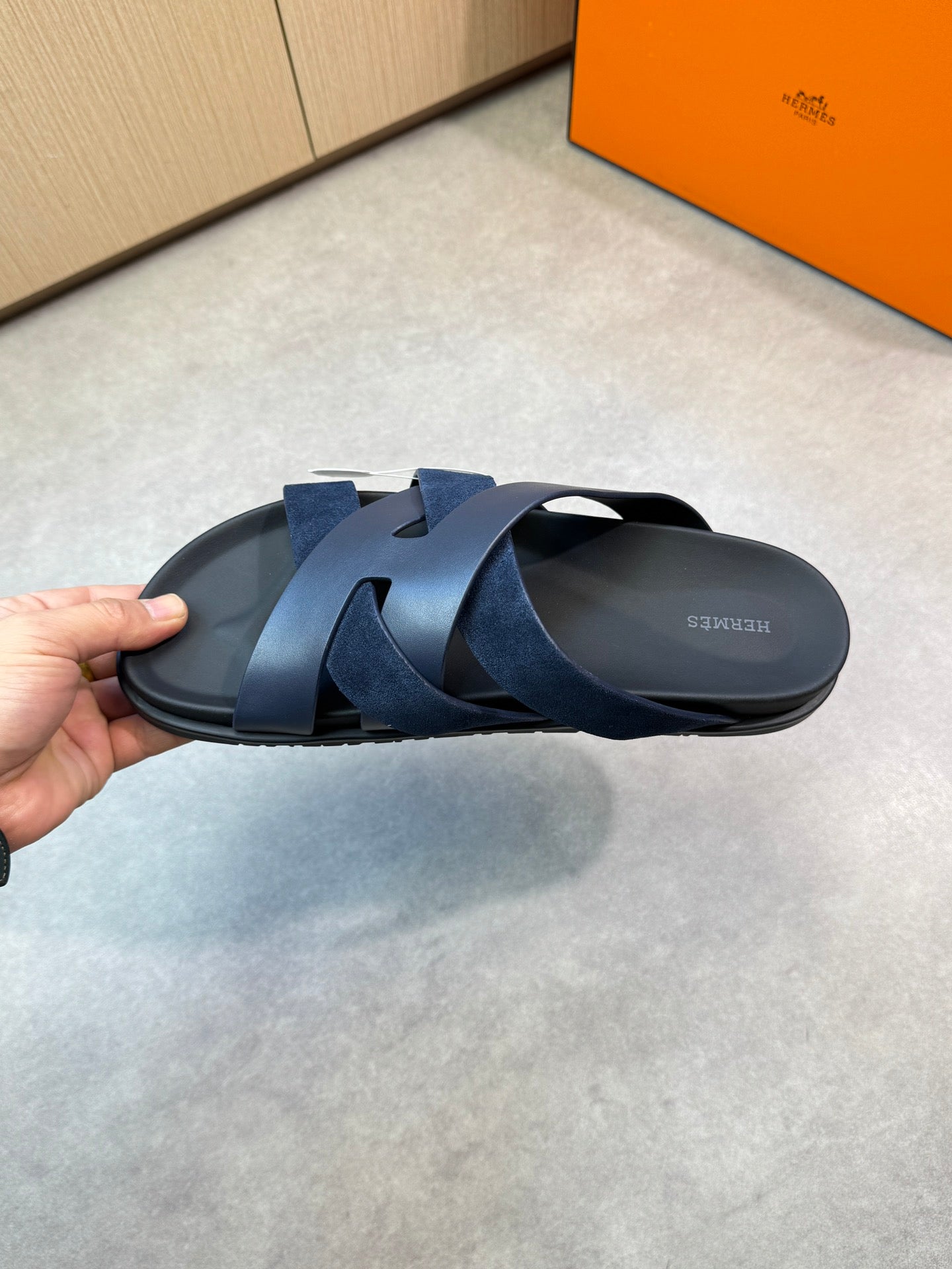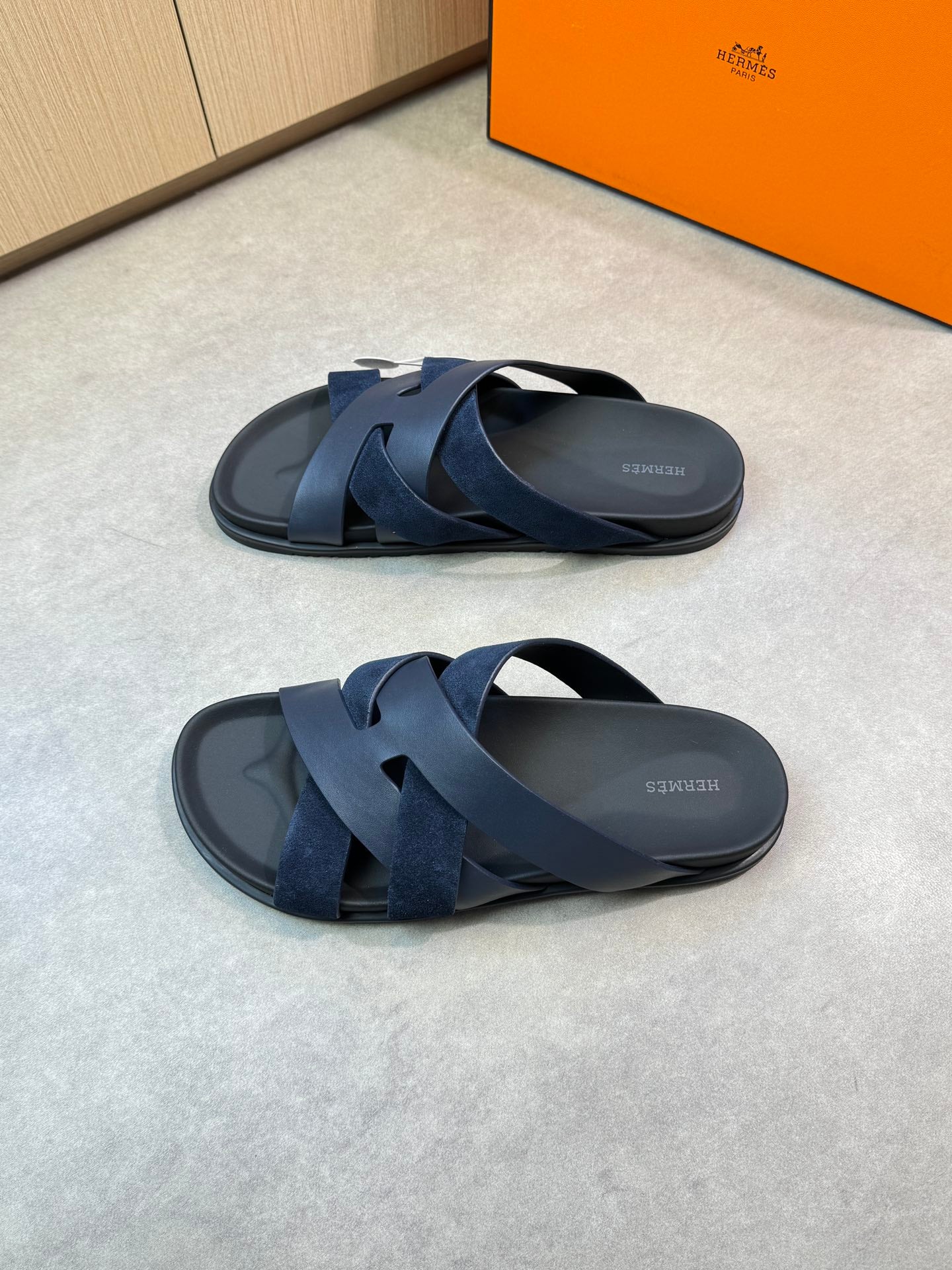 HM Men's Kazimir Slide Navy Blue Calfskin Suede 603171