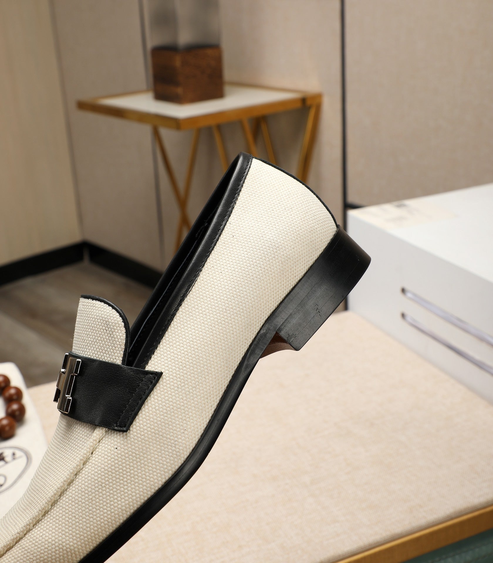 HM Men's Loafer White Black Cowhide 480419