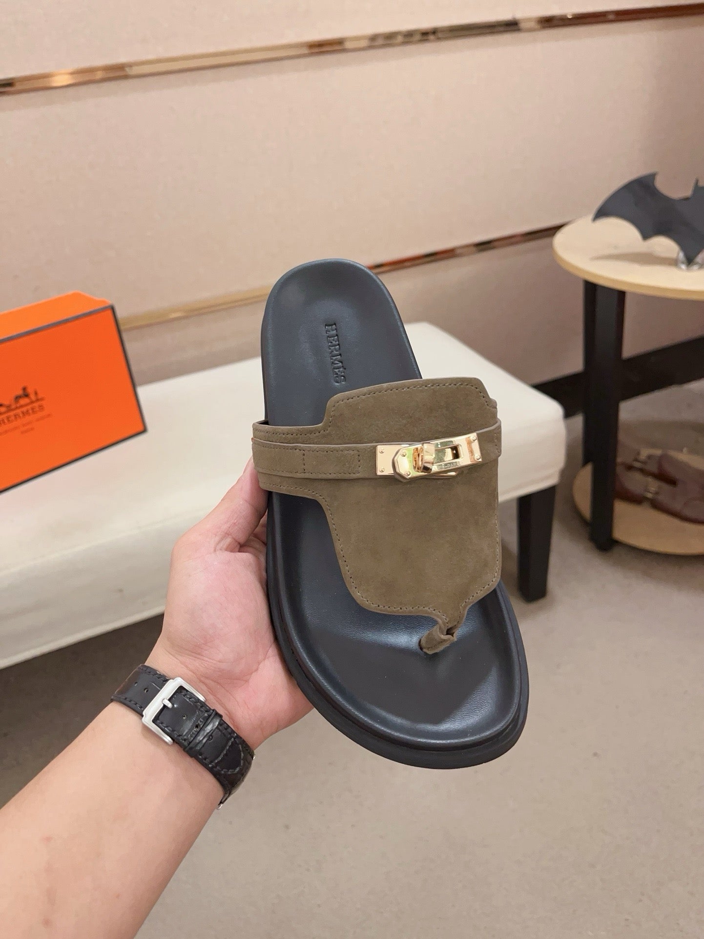 HM Men's Thong Sandals Brown Suede 564393