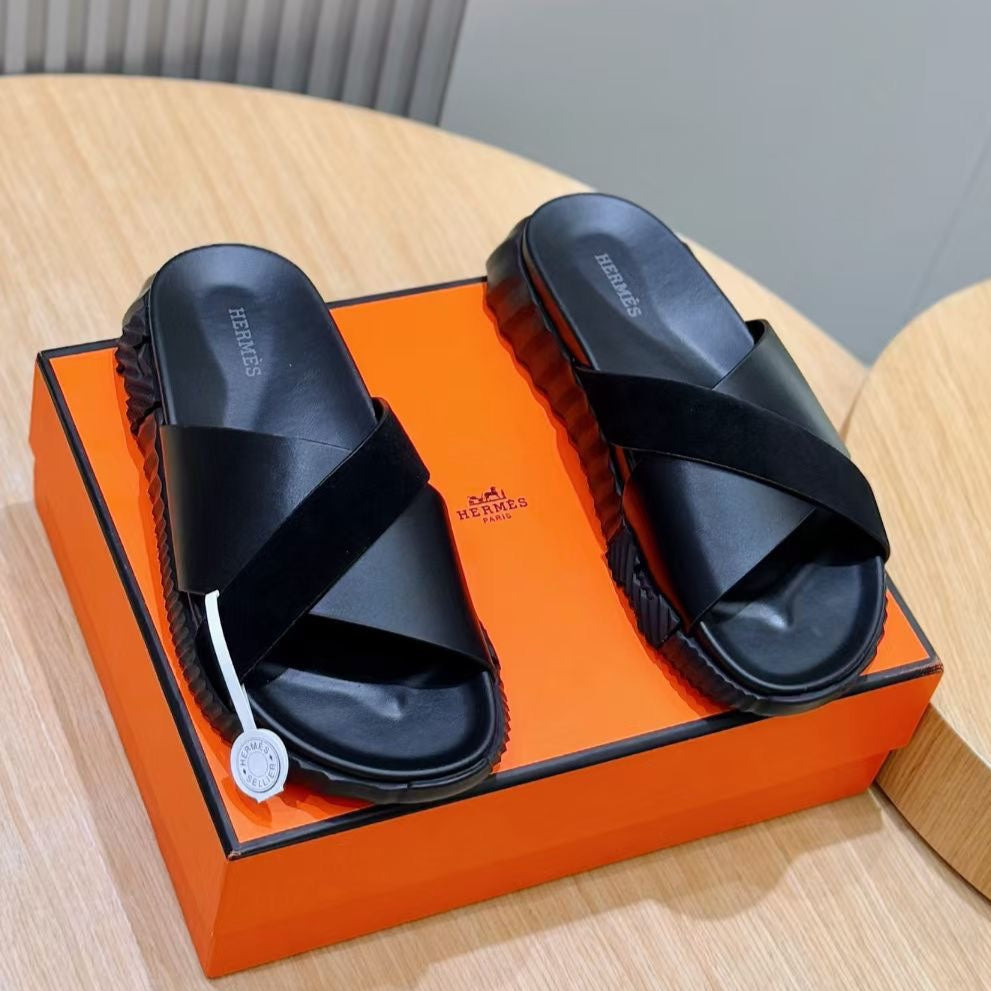 HM Men's Infra Slide Black Brown Cowhide 599991
