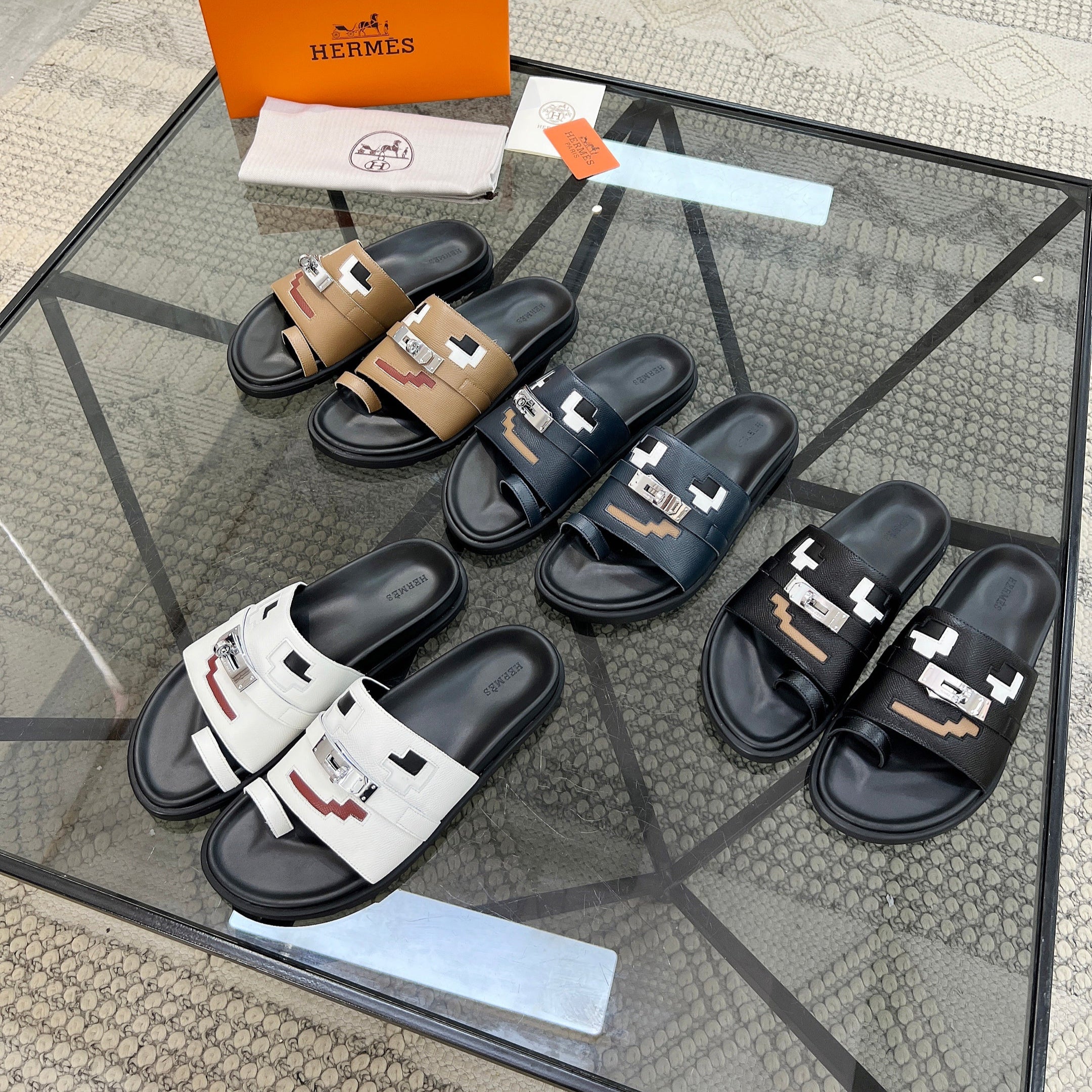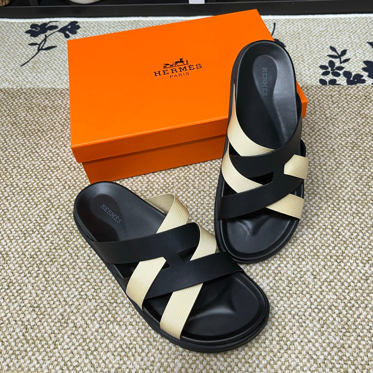 HM Men's Cross Strap Slide Beige Cowhide 544097