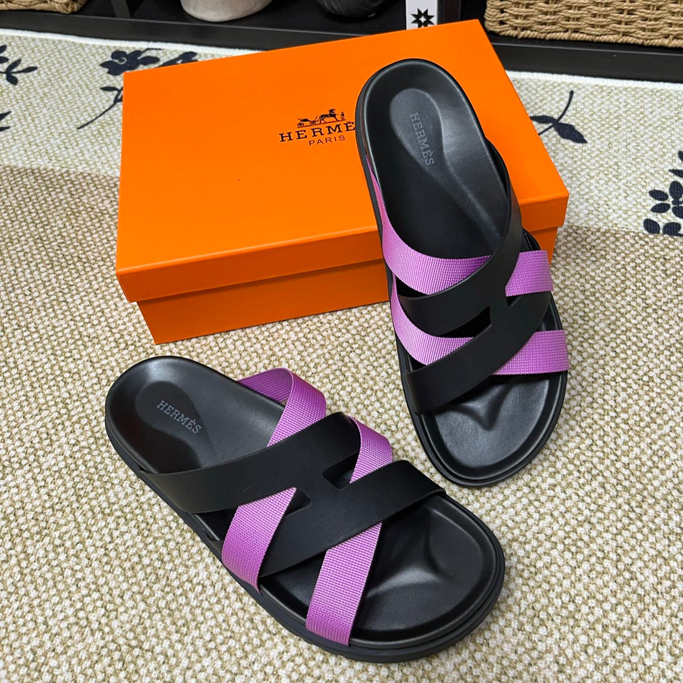 HM Men's Cross Strap Slide Black Cowhide 544100