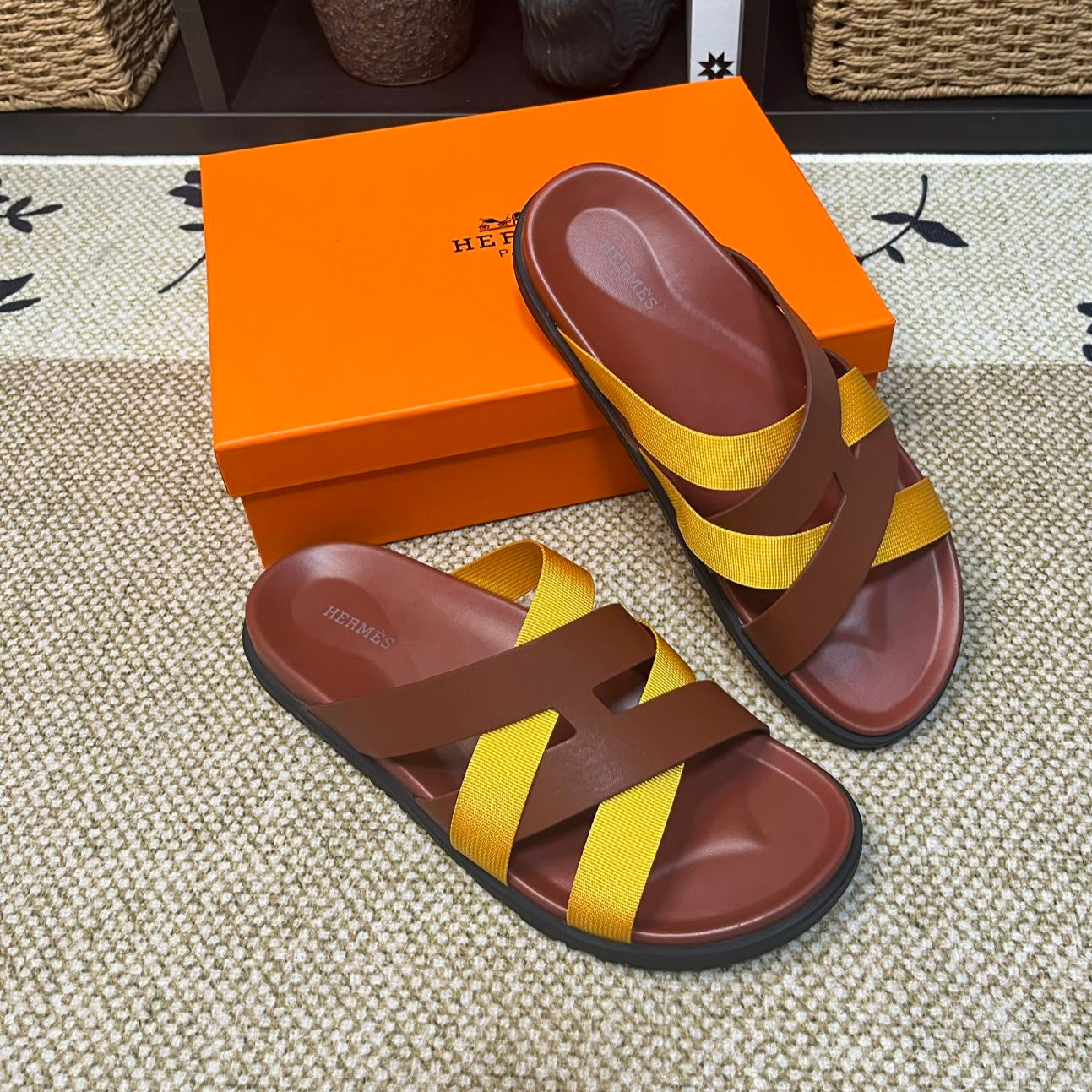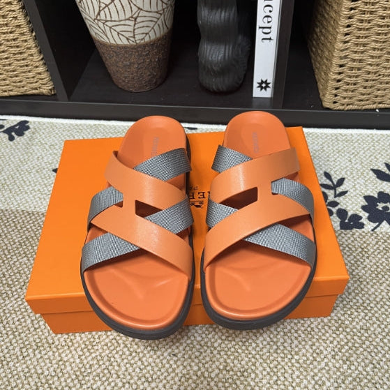 HM Men's Cross Strap Slide Orange Cowhide 544098