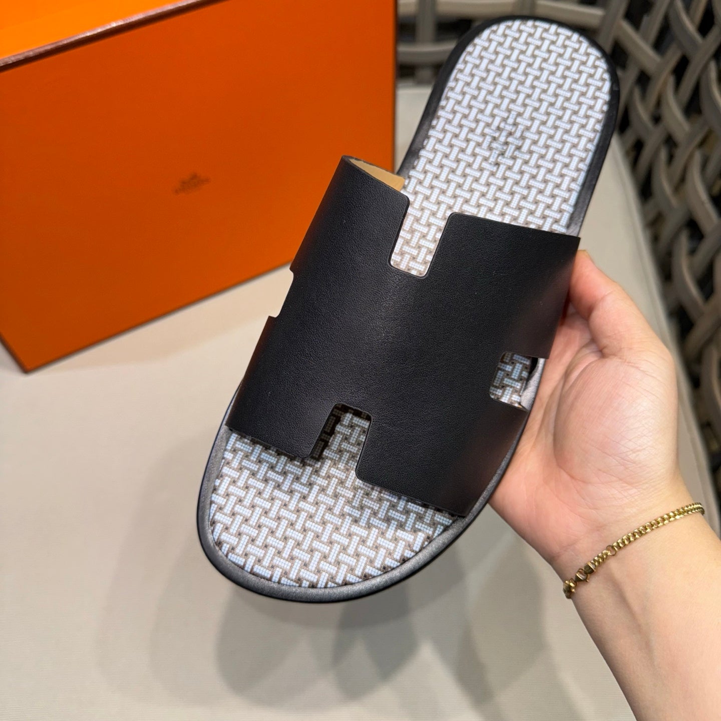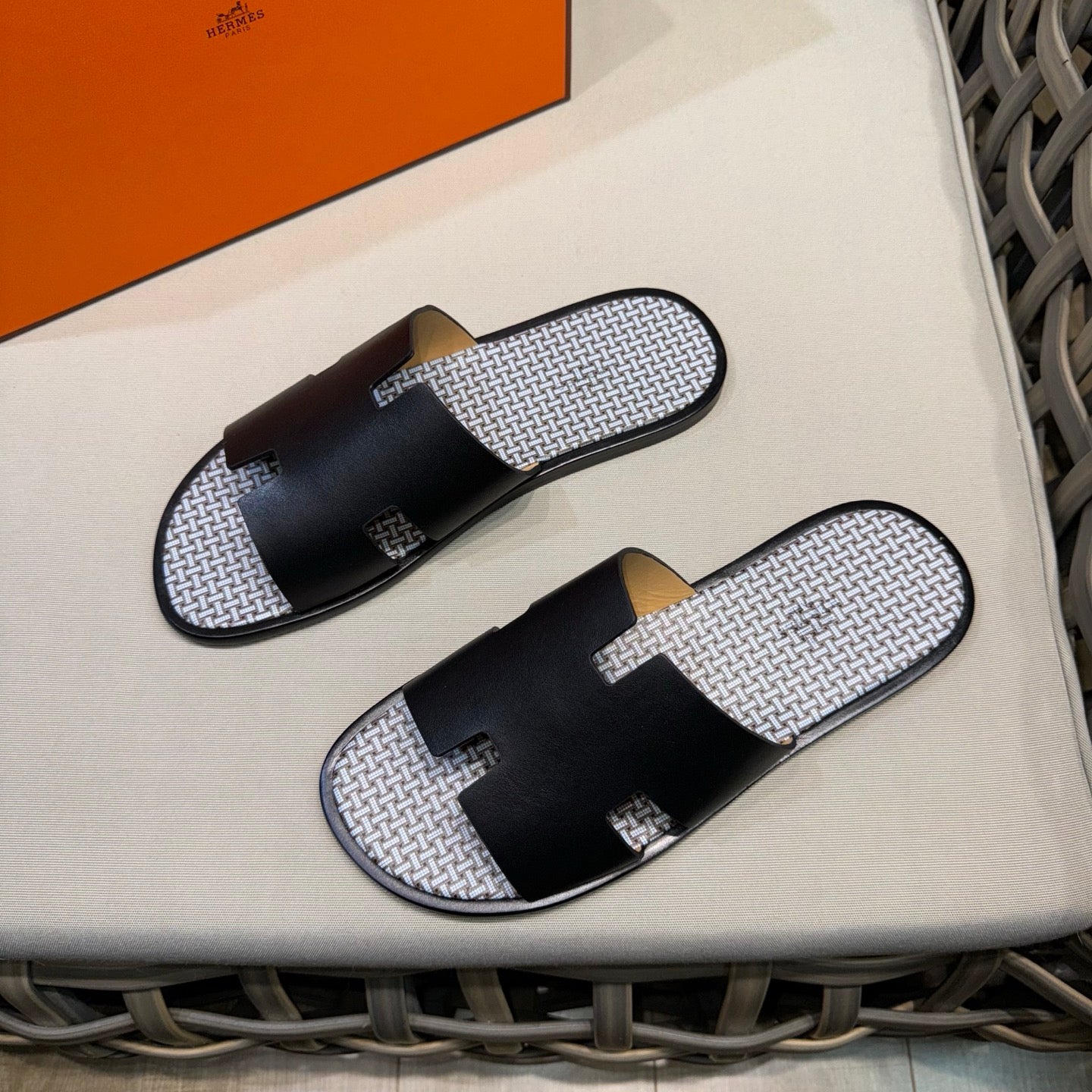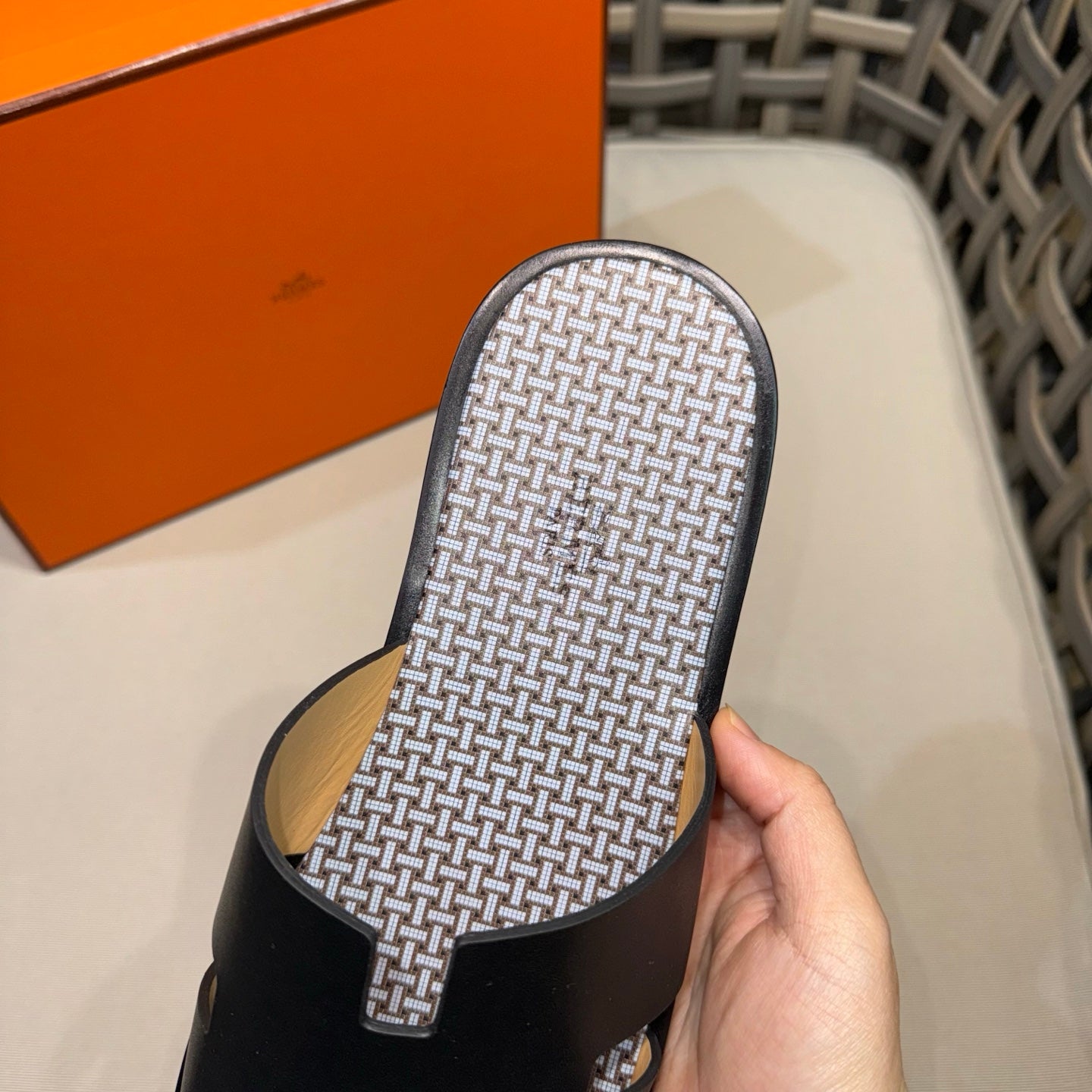HM Men's Chypre Slide Black Grey Cowhide 540211