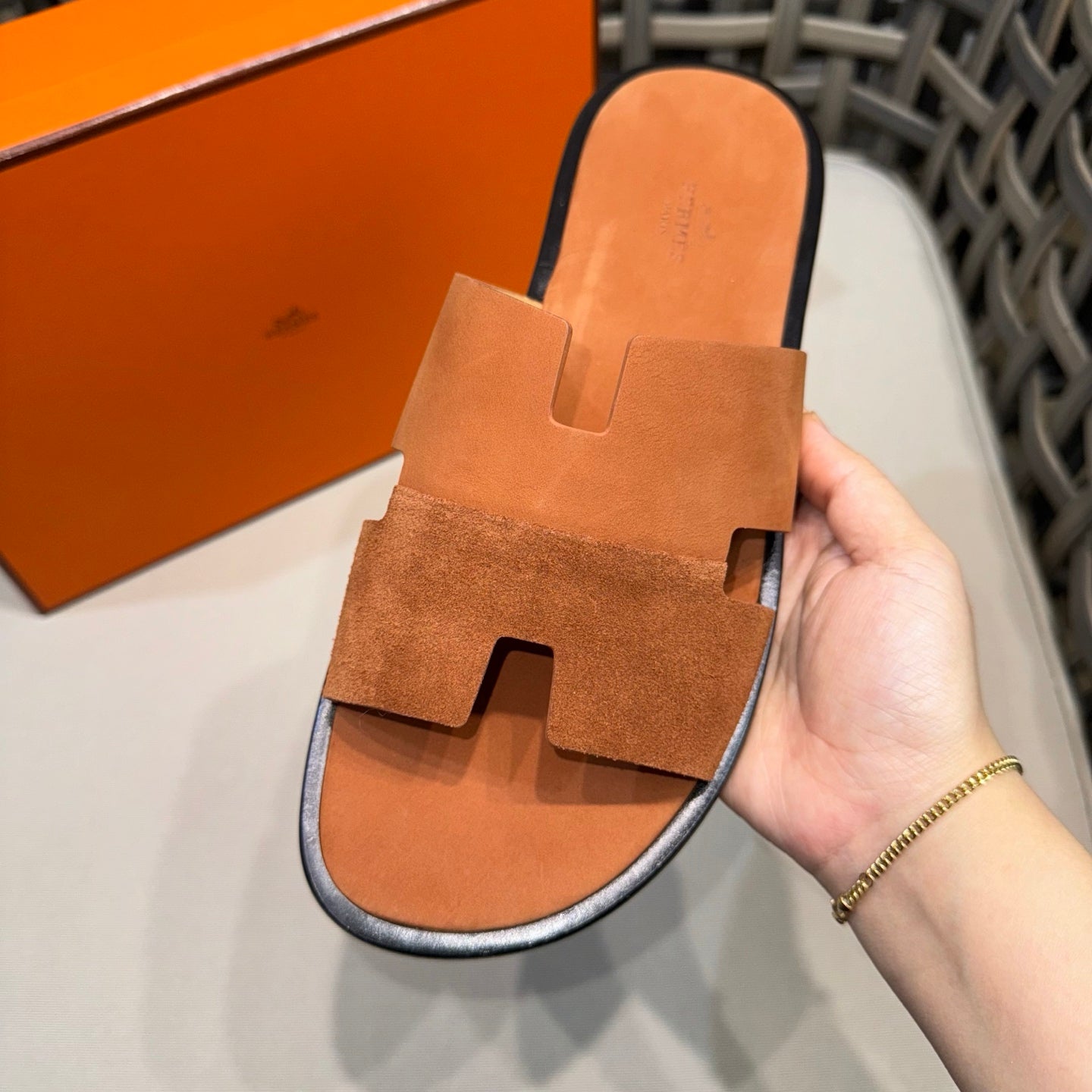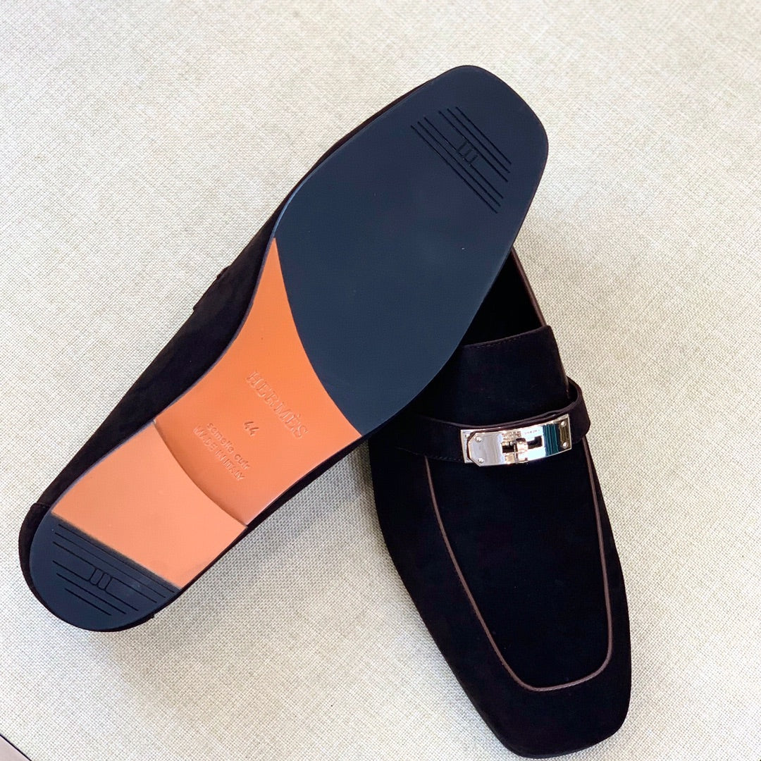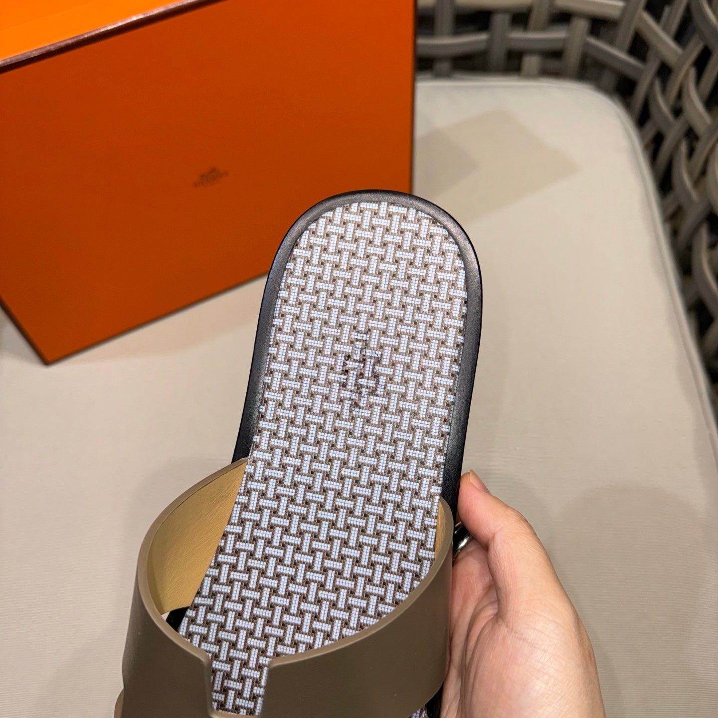 HM Men's Chypre Slide Black Grey Cowhide 540211