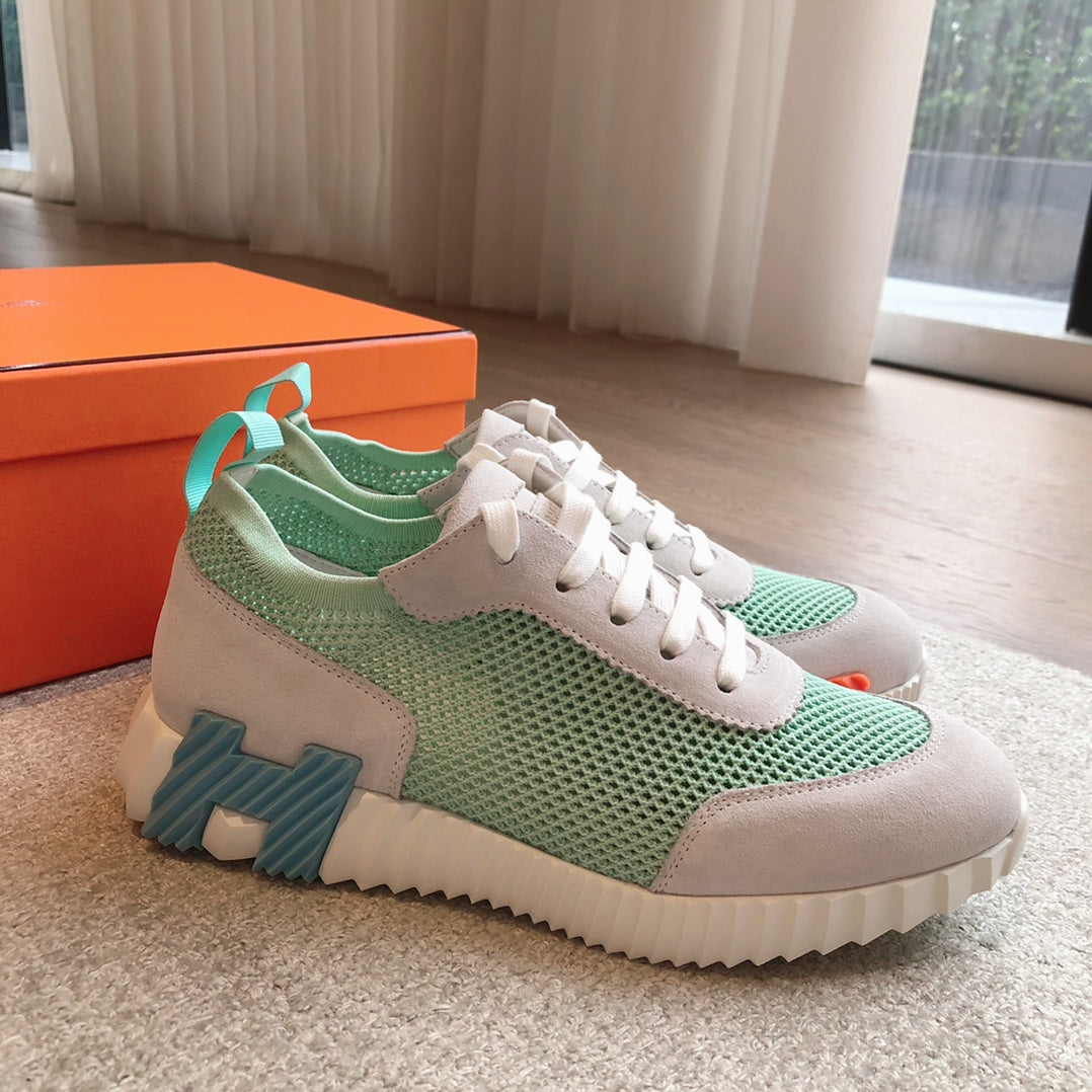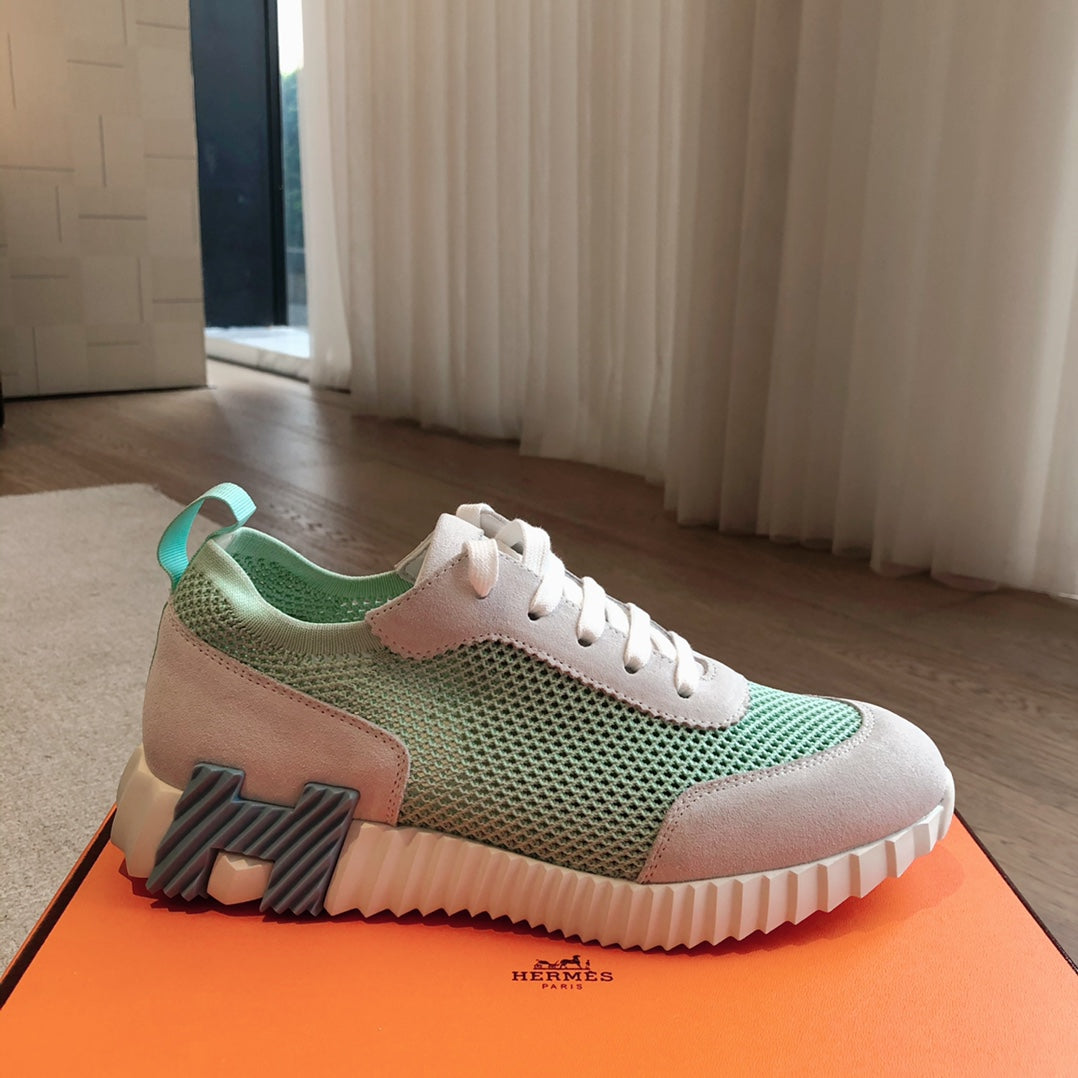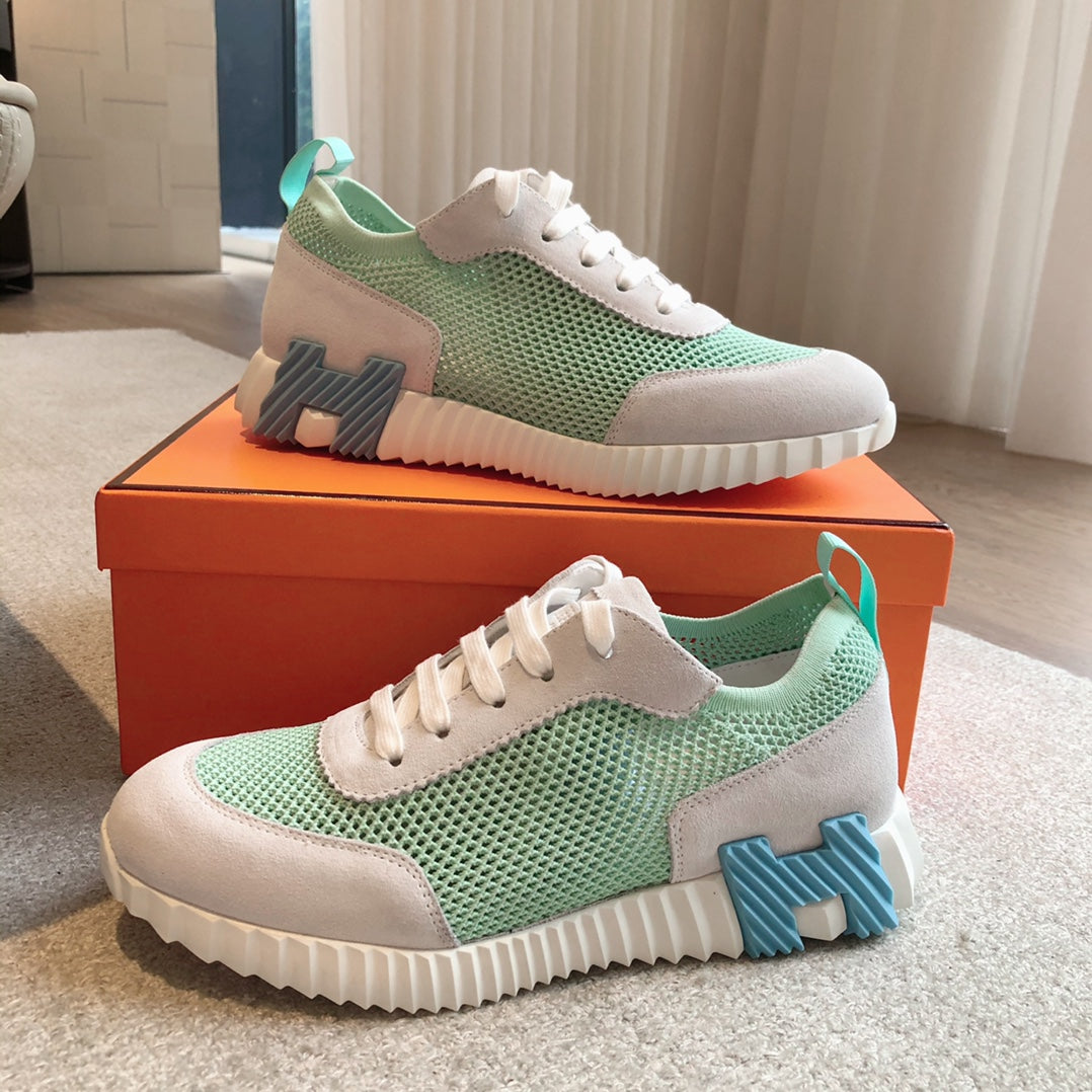 HM Men's Sneaker White Green Mesh Calfskin 541263