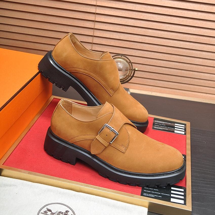 HM MONK STRAP CARAMEL WITH CROCODILE MOTIF CALFSKIN