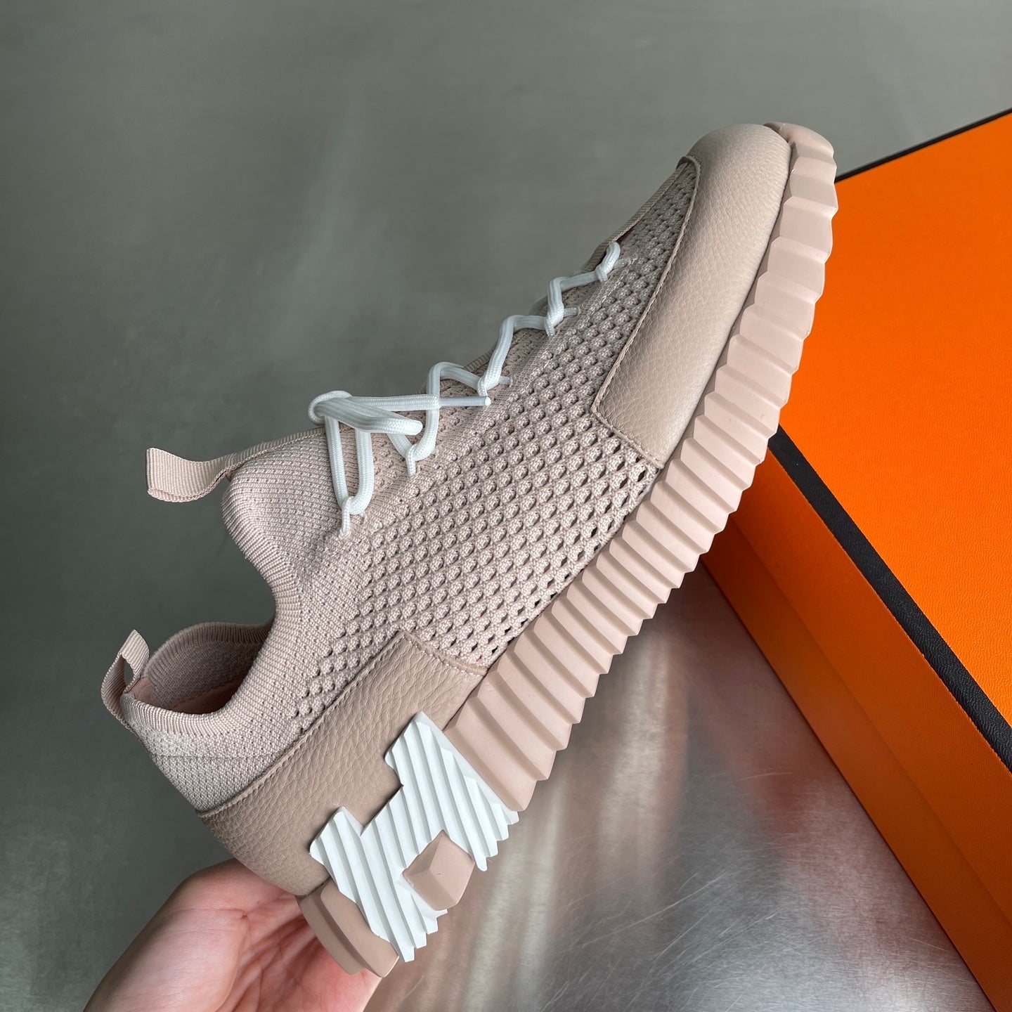 HM Men's 25 Lift Sneaker Beige Mesh Calfskin 703782