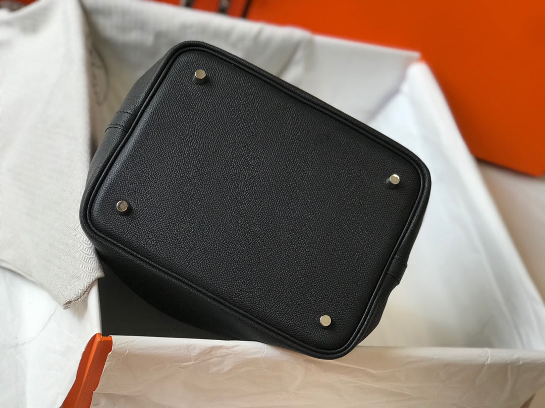 HM PICOTIN LOCK 22 BLACK EPSOM WITH BRAID STRAP