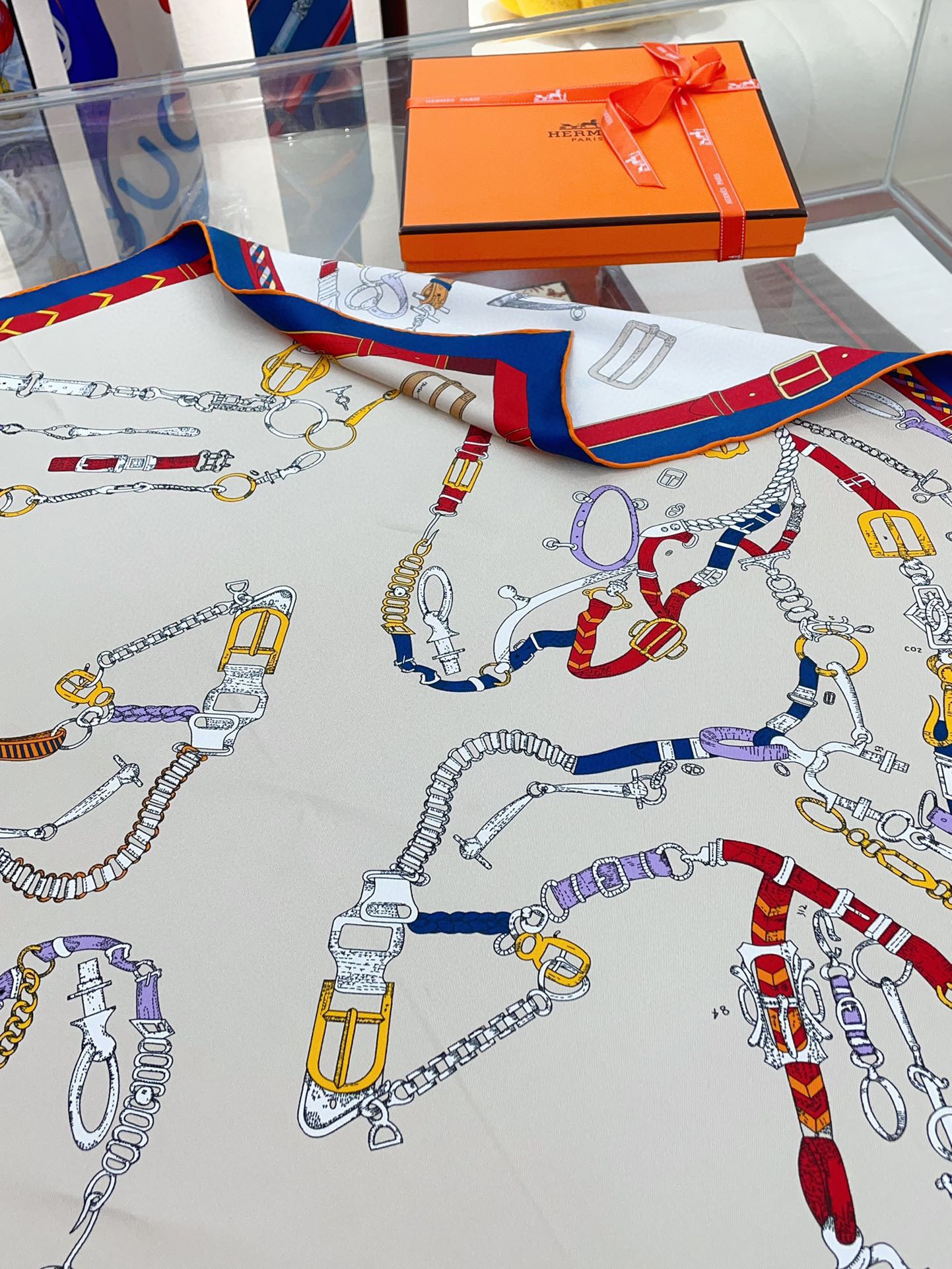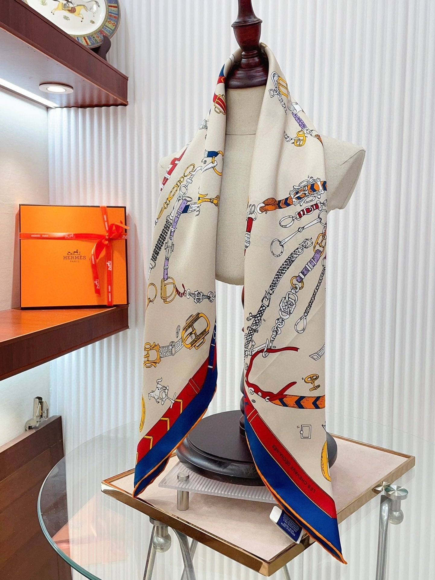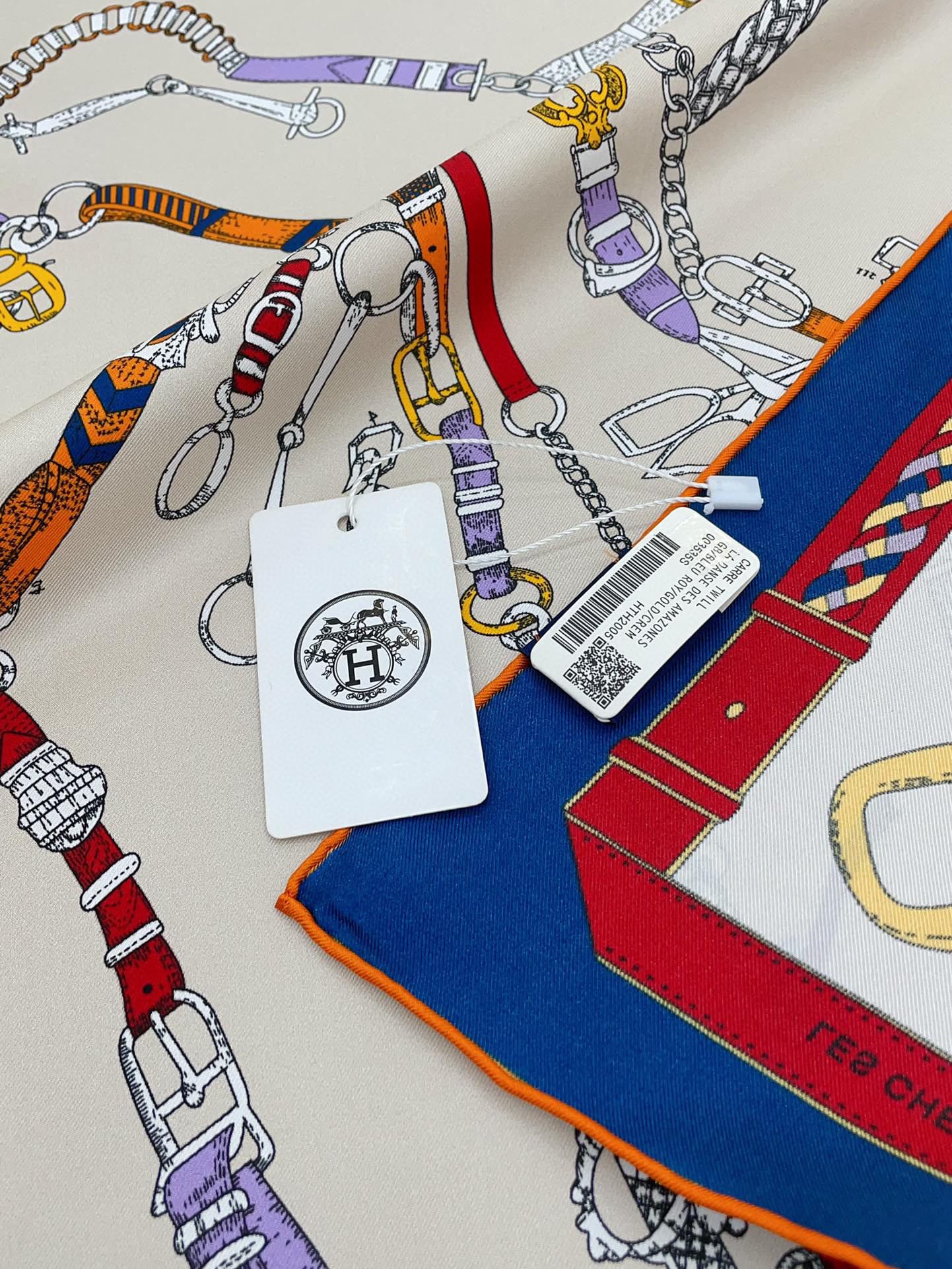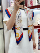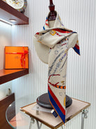 Chevaux Dechaines Shawl 90 CM In White Red Colorful Silk Twill 201031