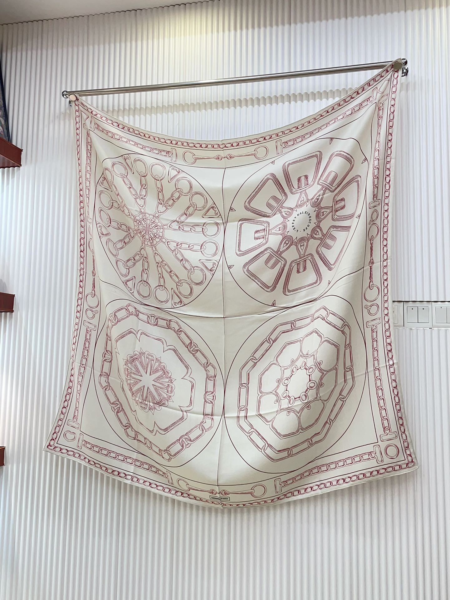 Effet Kaleidoscope Shawl 135 CM In White Mix Red Cashmere And Silk 382606