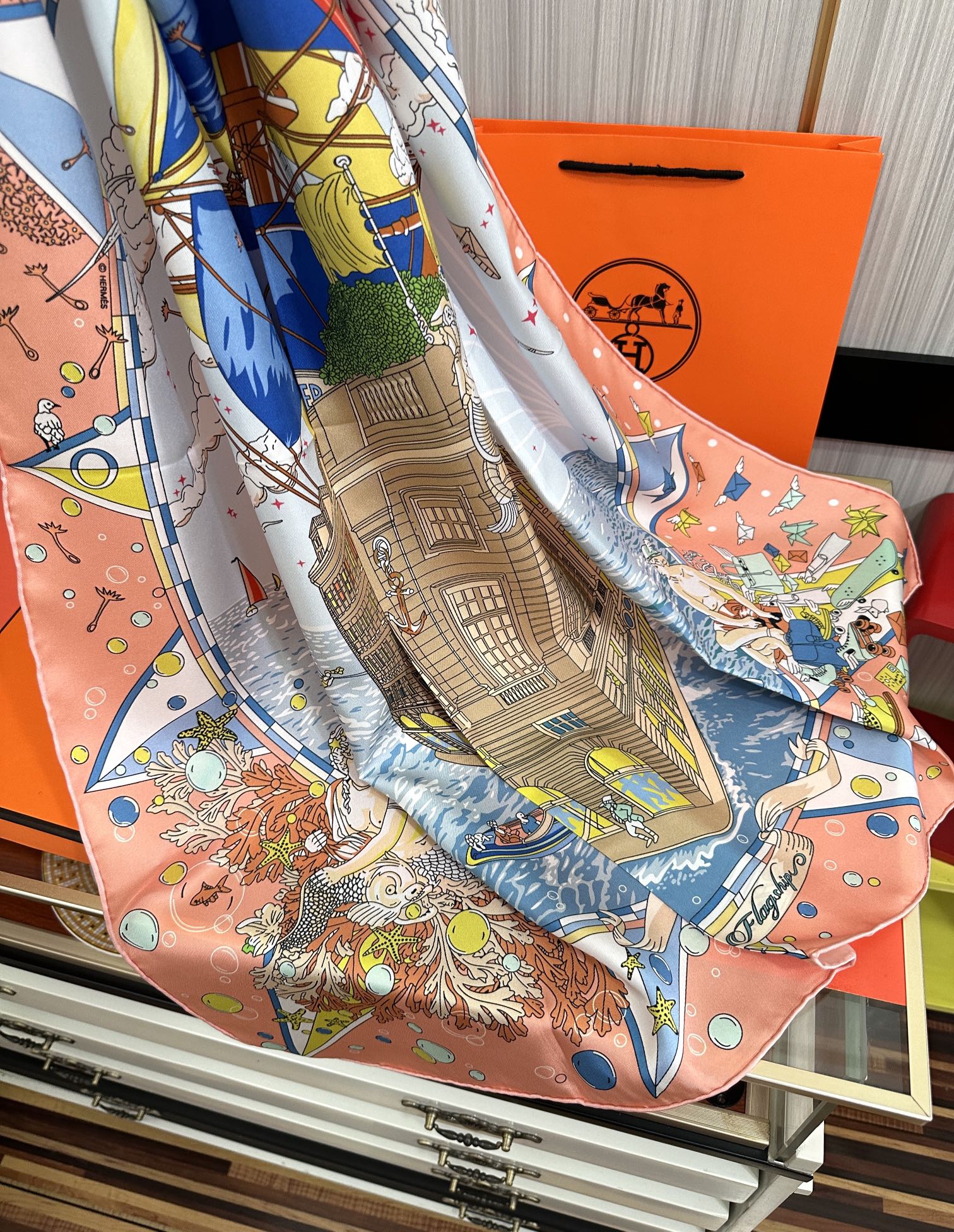 Flagship Silk Scarf 90 CM Pink Orange Colorful