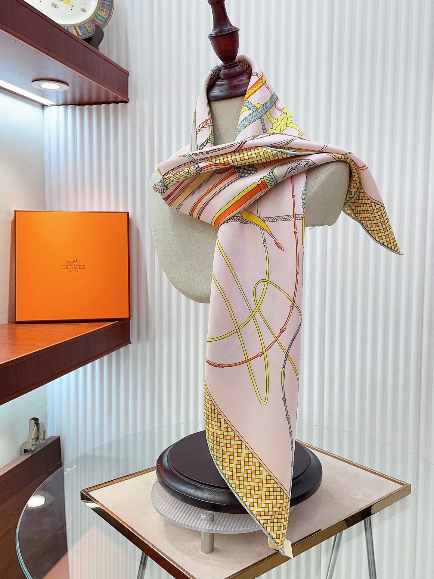 Fouets Et Badines Scarf 90 CM In Light Pink Colorful Silk 208583