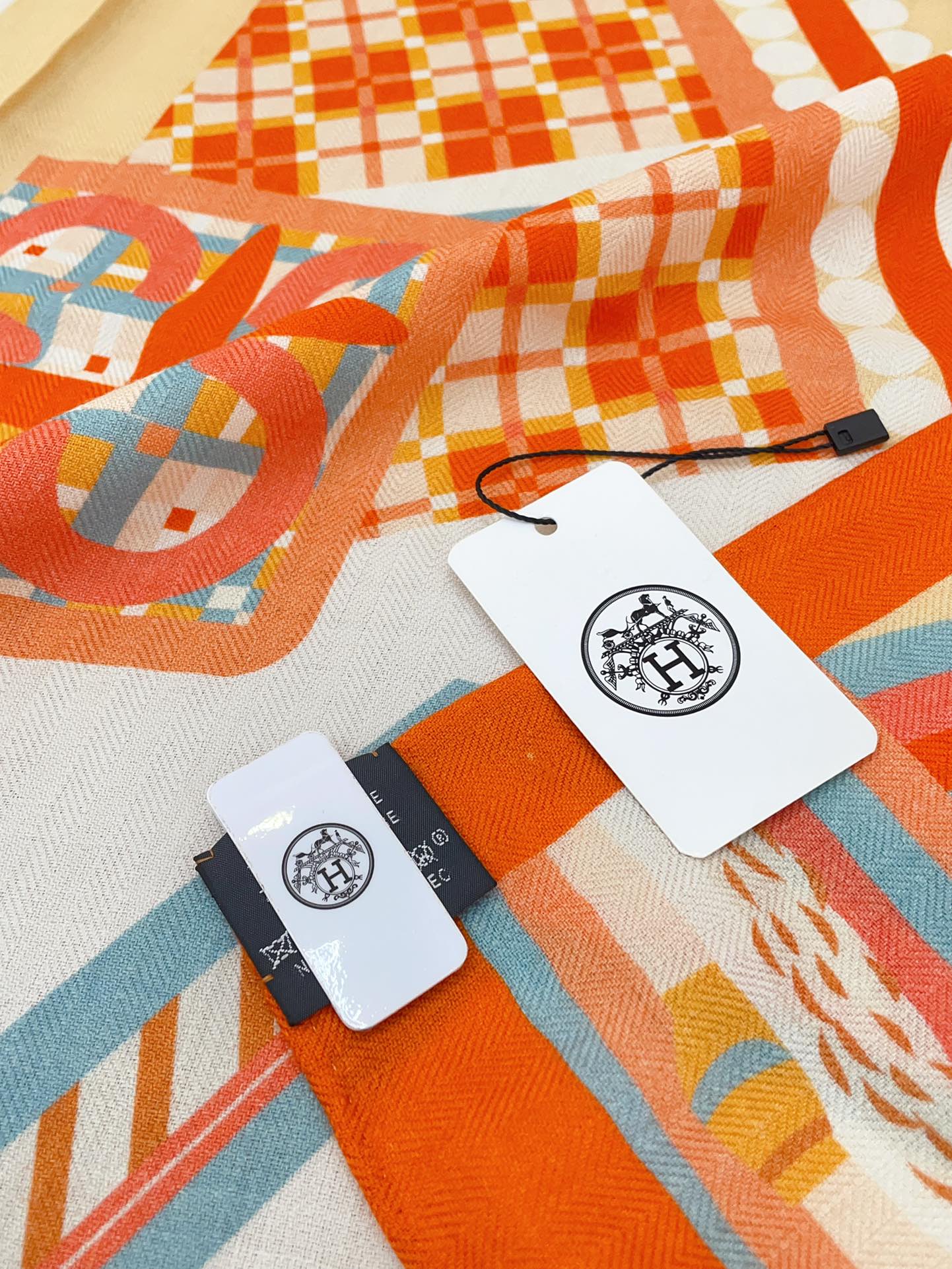 Haute Parure Scarf 135 CM In Orange Colorful Cashmere And Silk 324754