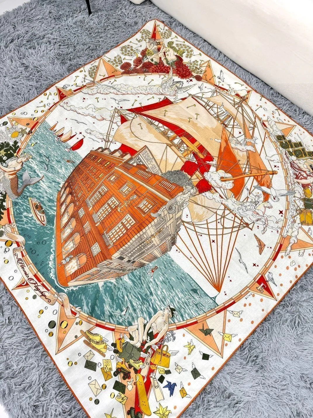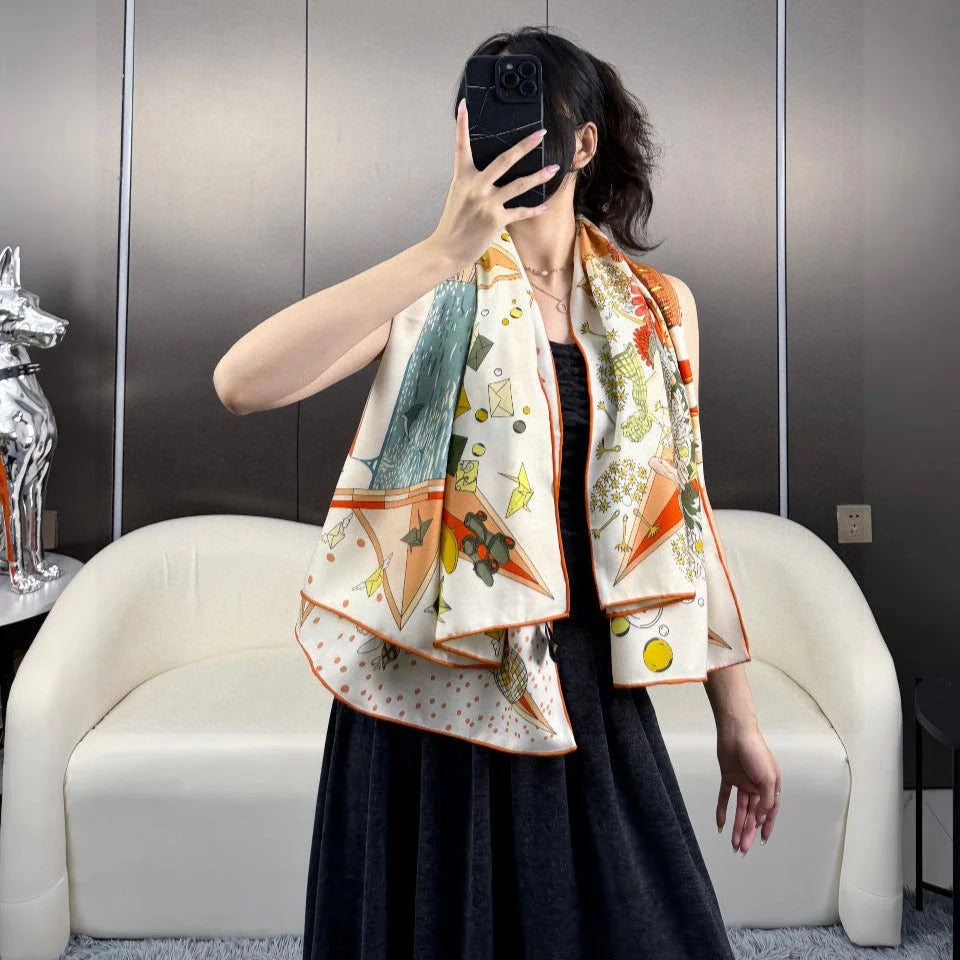 HERMES 25S SCARF 135 IN SILK AND CASHMERE 735831