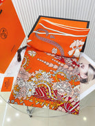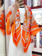 La Danse Du Printemps Scarf 140 In Orange Colorful Cashmere And Silk 344365