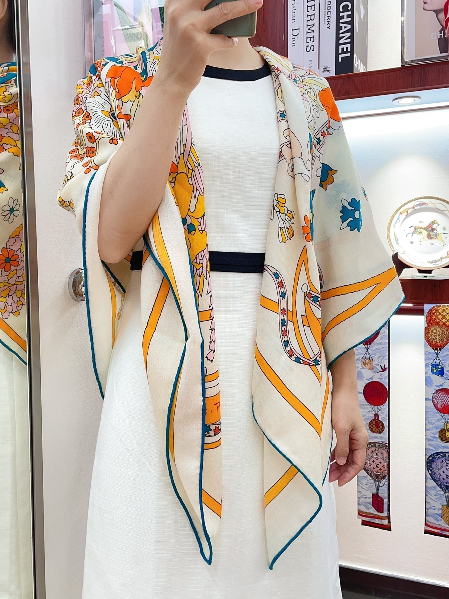 La Danse Du Printemps Scarf 140 In Yellow Colorful Cashmere And Silk 344366