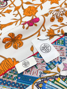 Le Jaguar Et Le Colibri Shawl 90 CM In Orange Colorful Silk Twill 274209