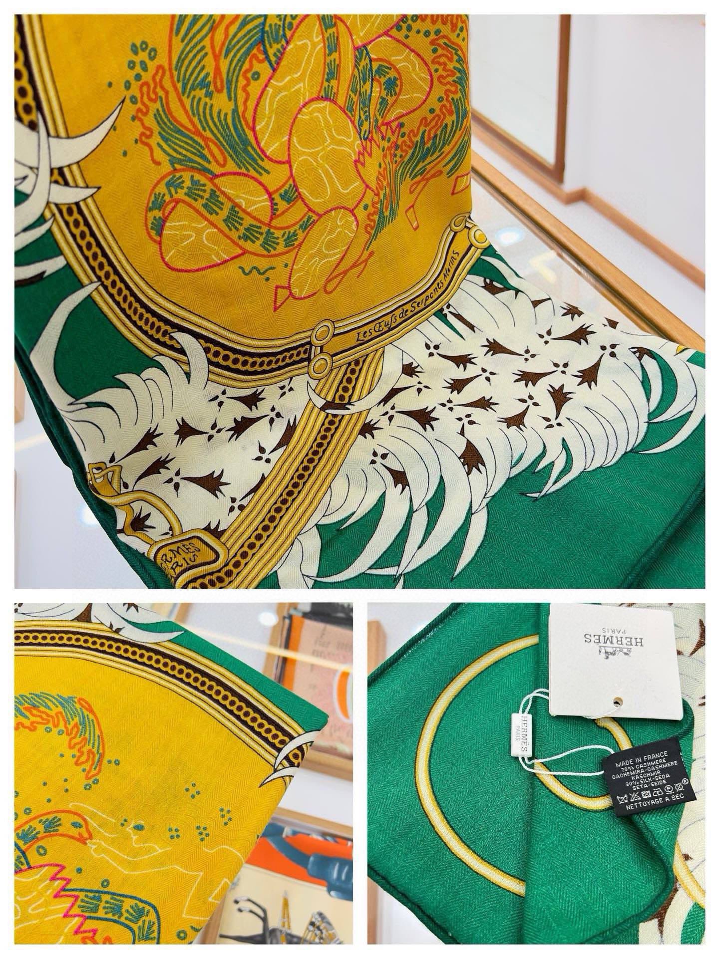 Legende Brodee Scarf 140 CM In Green Colorful Cashmere And Silk 276518
