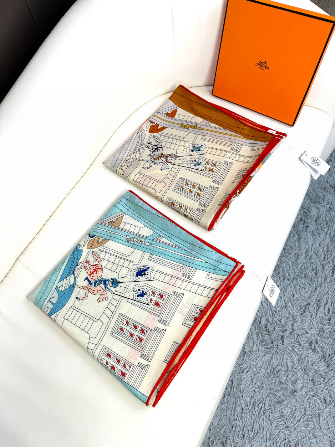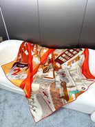 Mystere Au 24 Scarf 135 CM Yellow Orange Colorful Cashmere And Silk