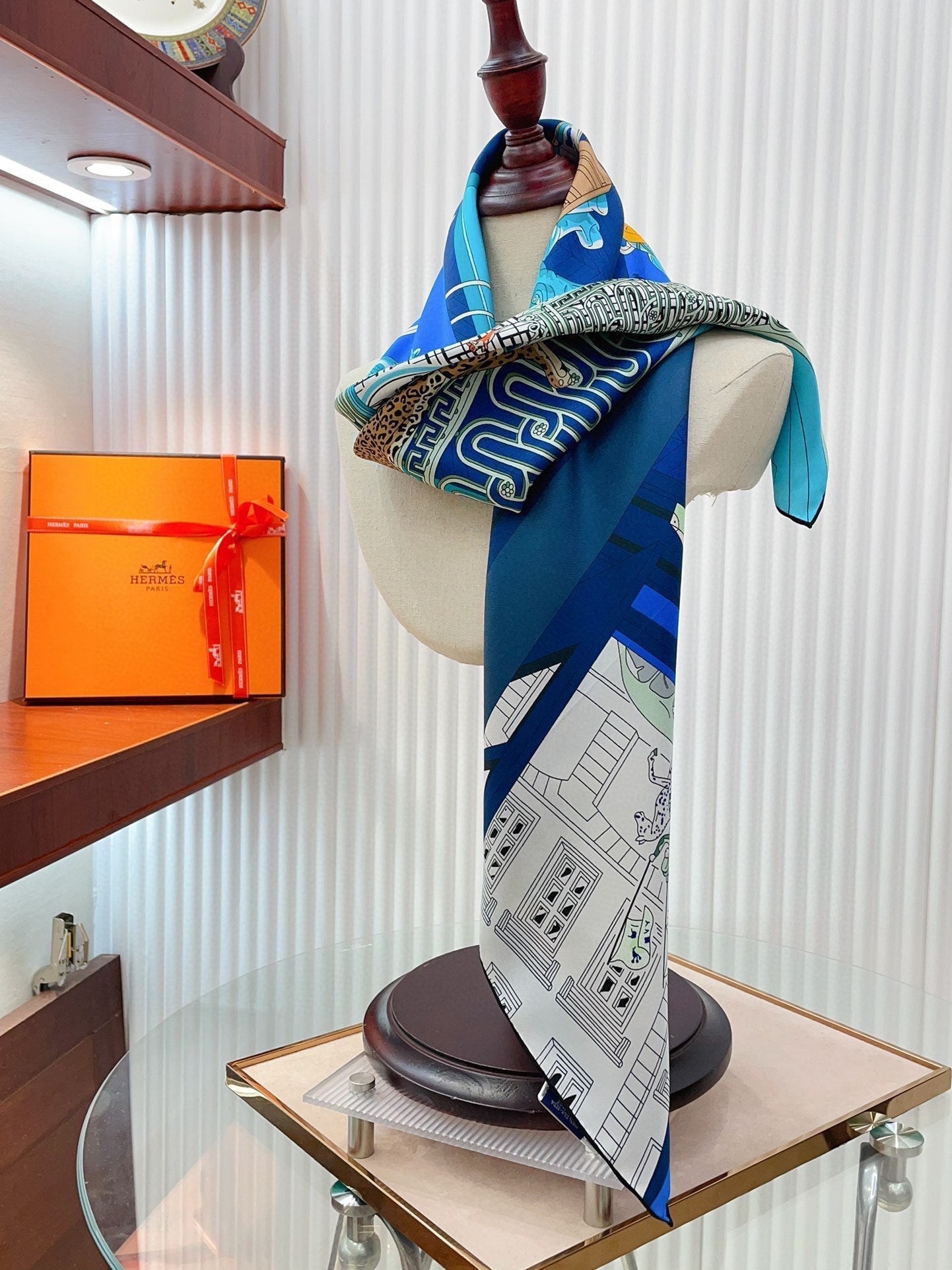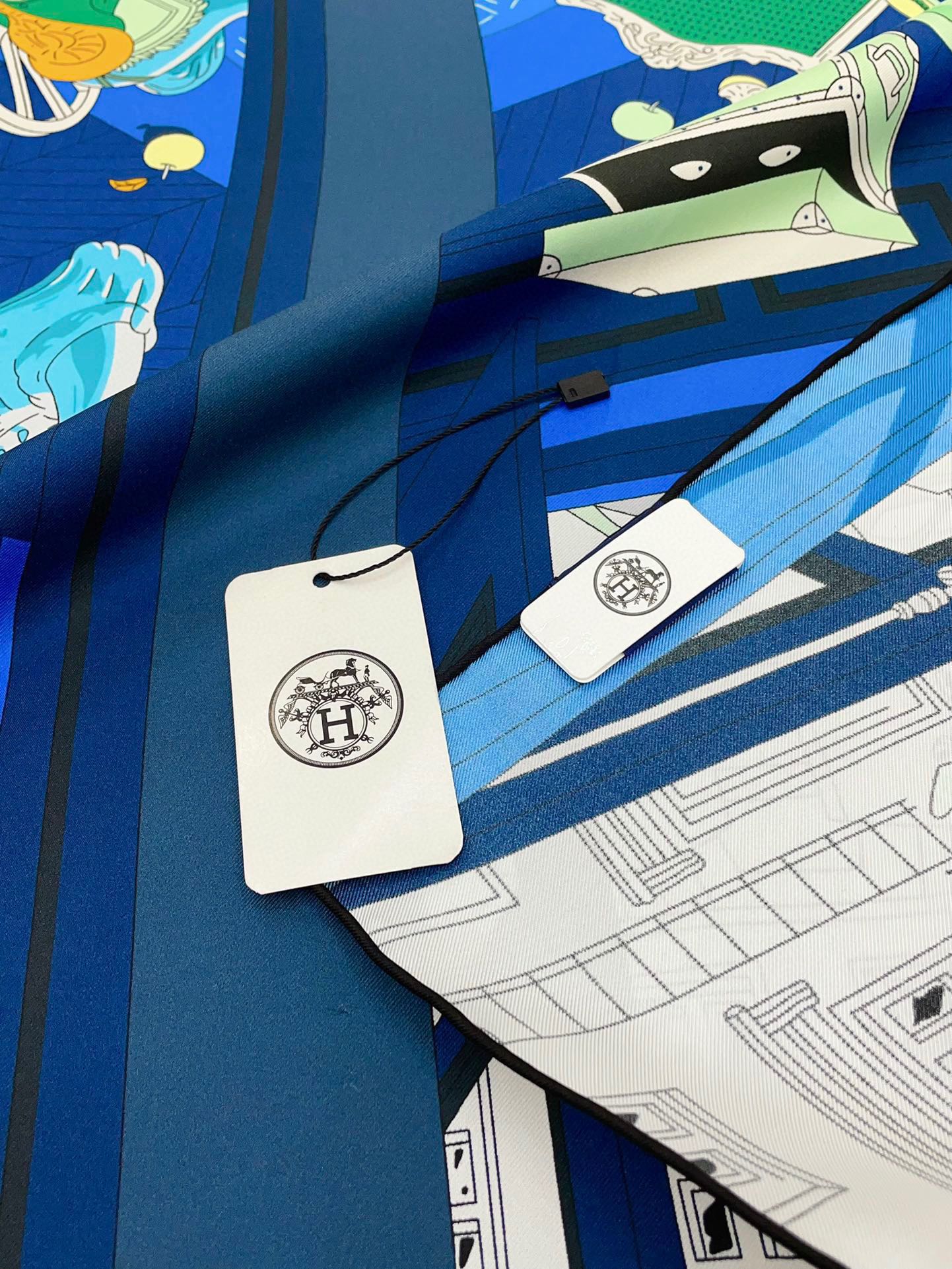 Mystere Au 24 Scarf 90 CM In Dark Blue Colorful Silk Twill 321935