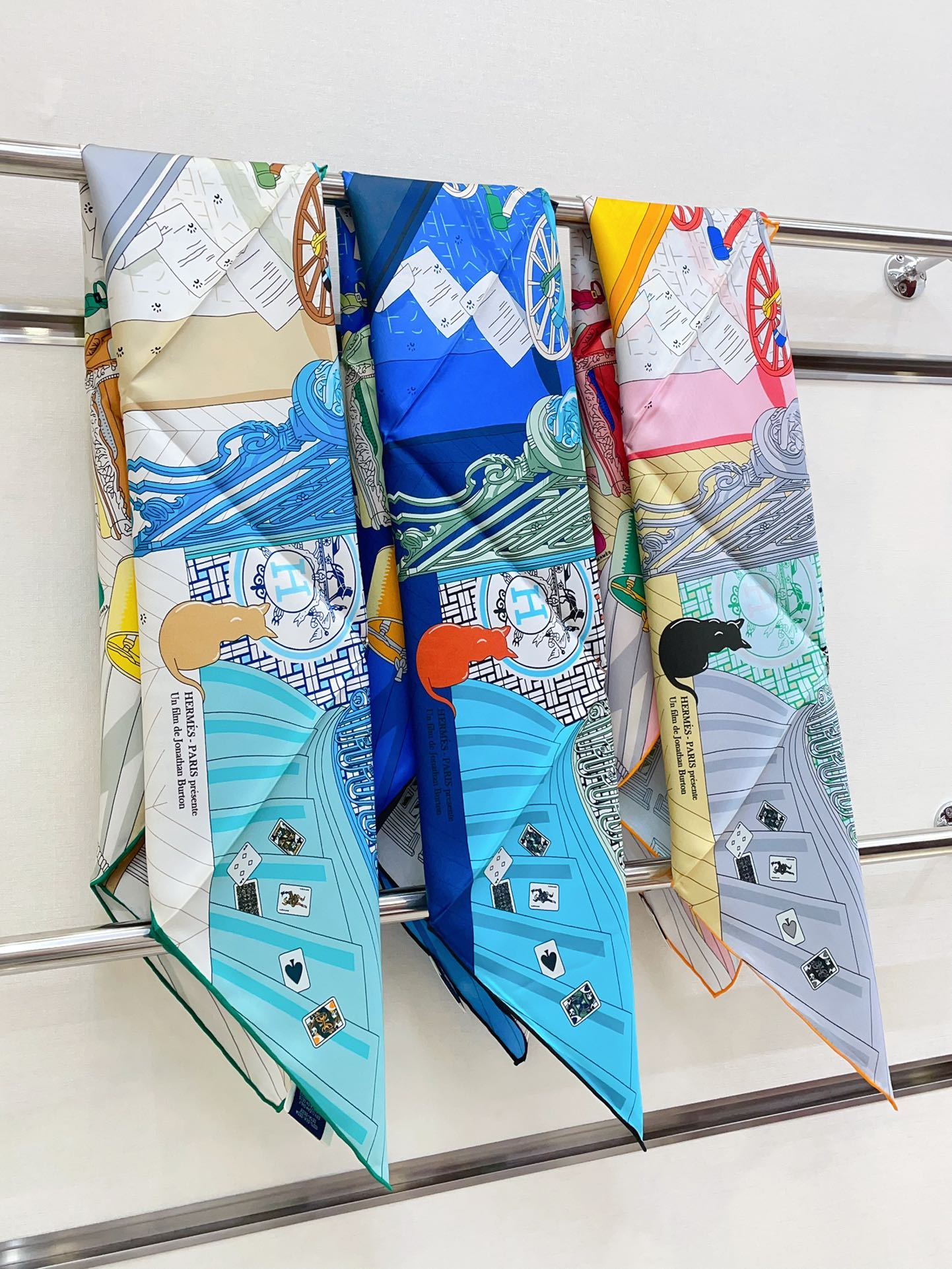 Mystere Au 24 Scarf 90 CM In Light Turquoise Colorful Silk Twill 321934