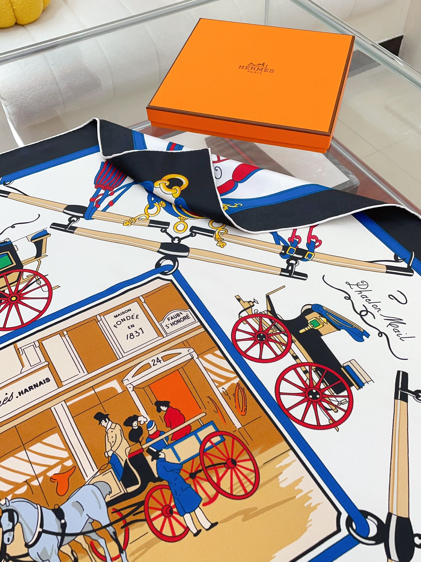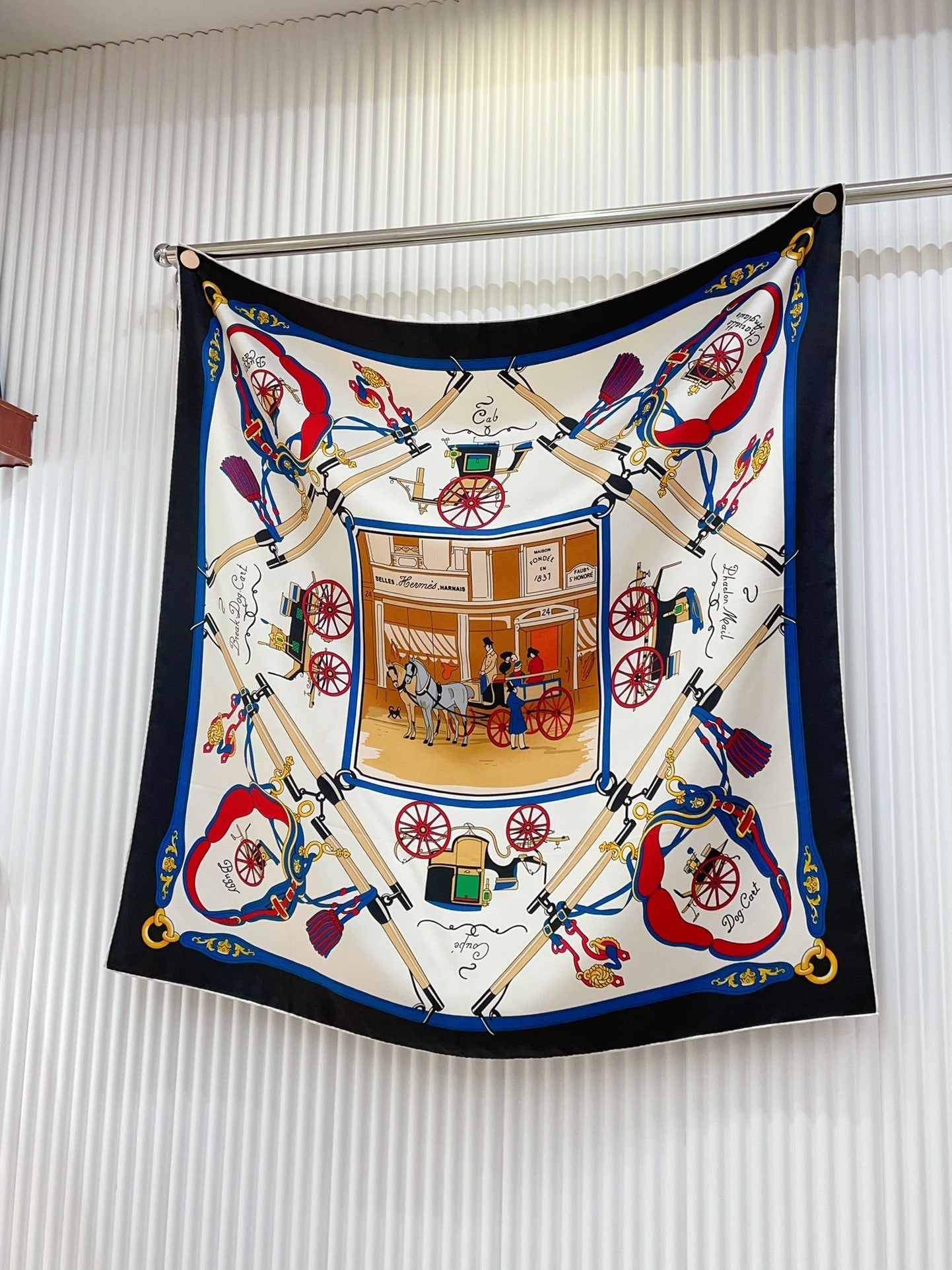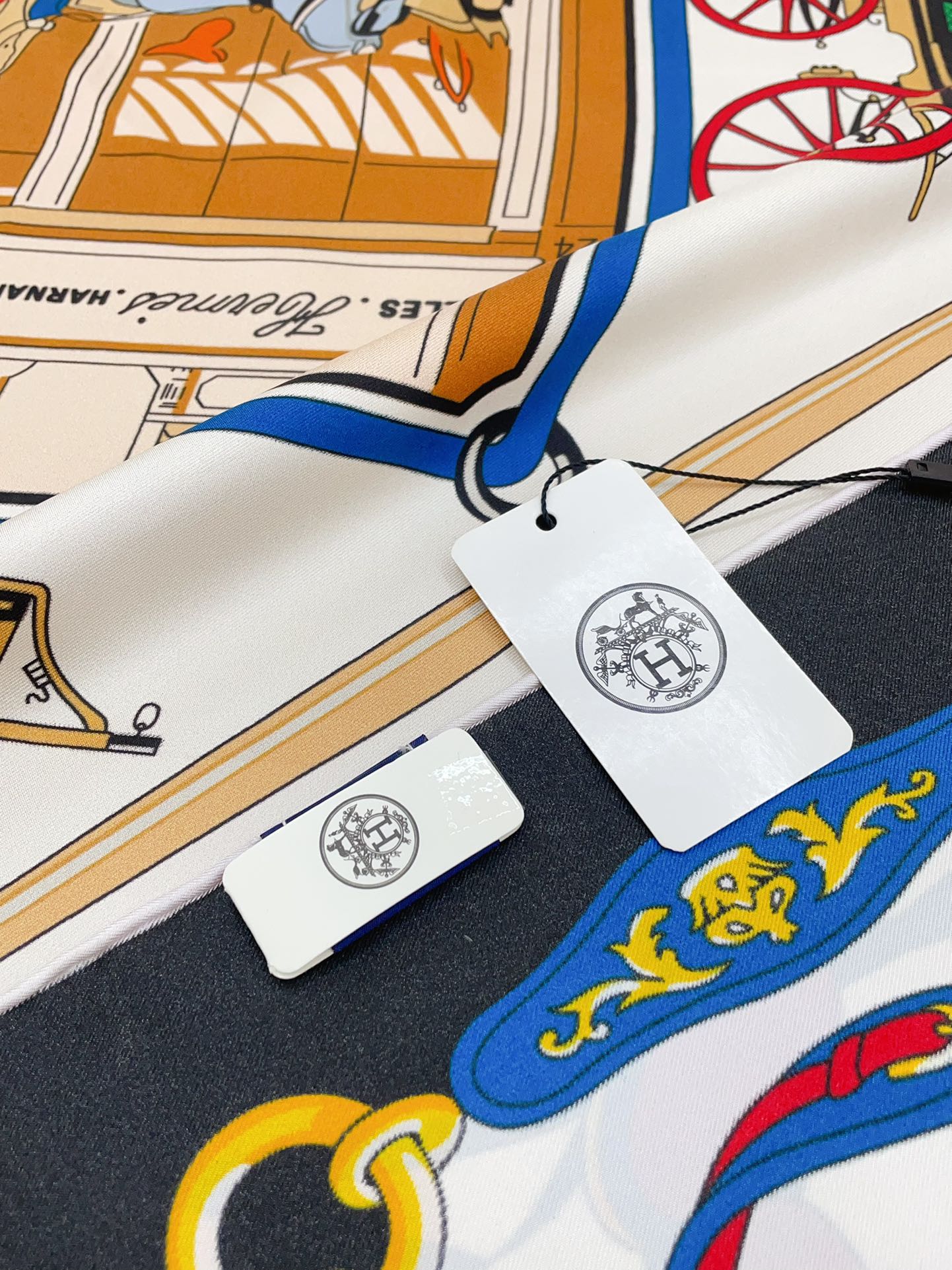 Palonniers scarf 90 CM In Black Colorful Silk Twill 321909