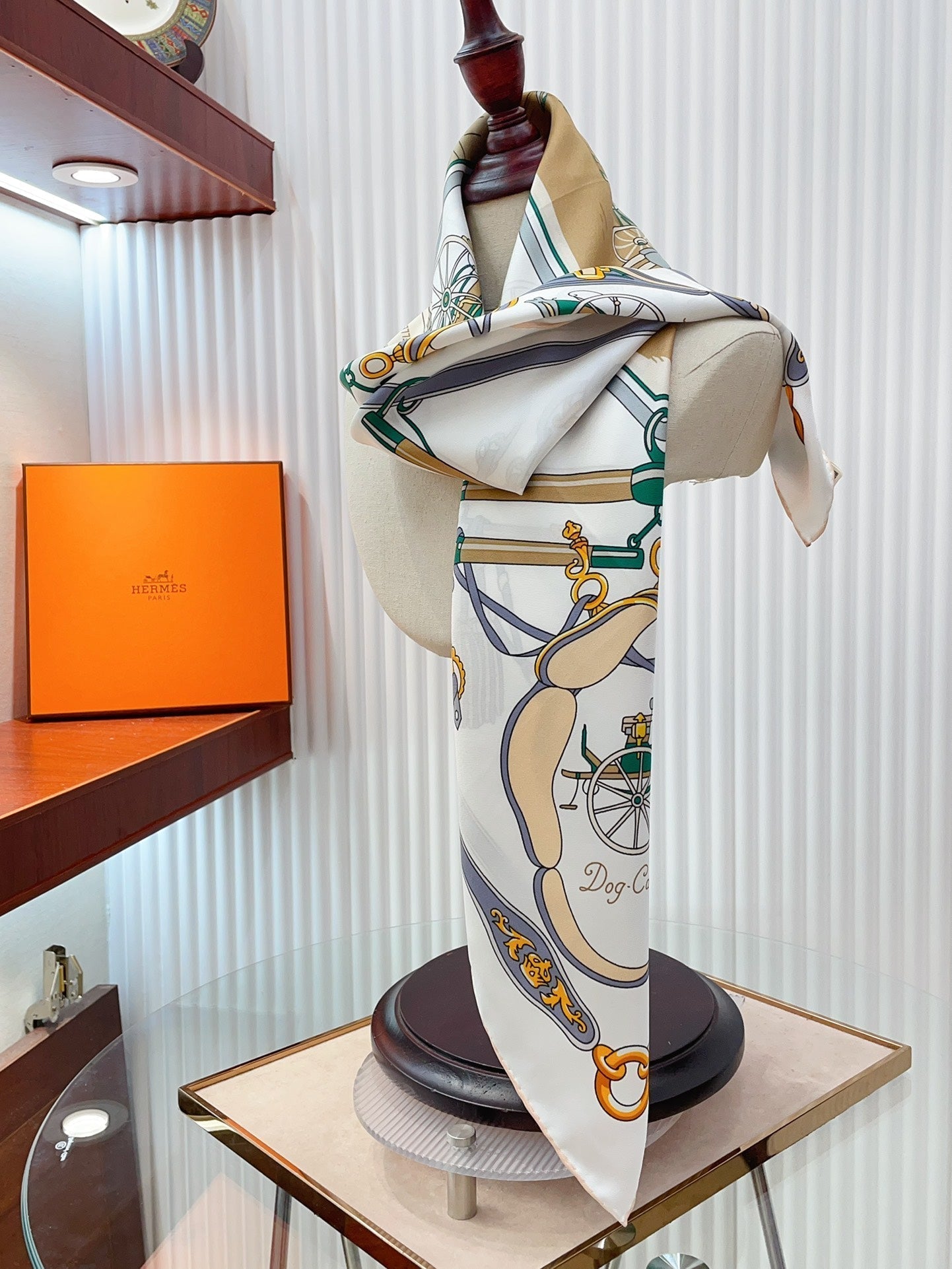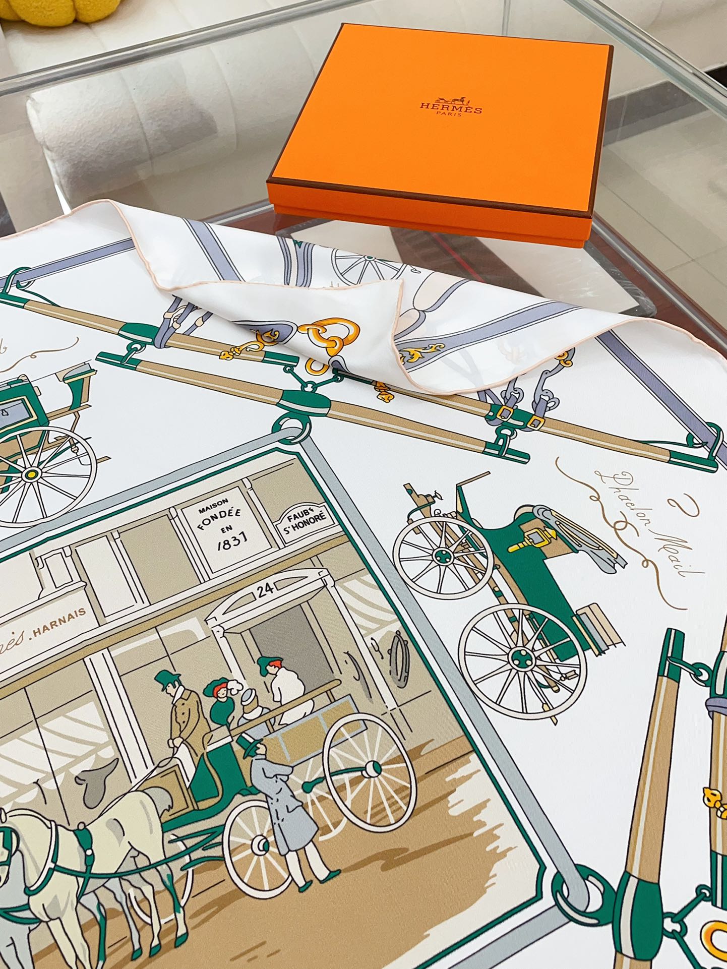 Palonniers scarf 90 CM In White Colorful Silk Twill 321911
