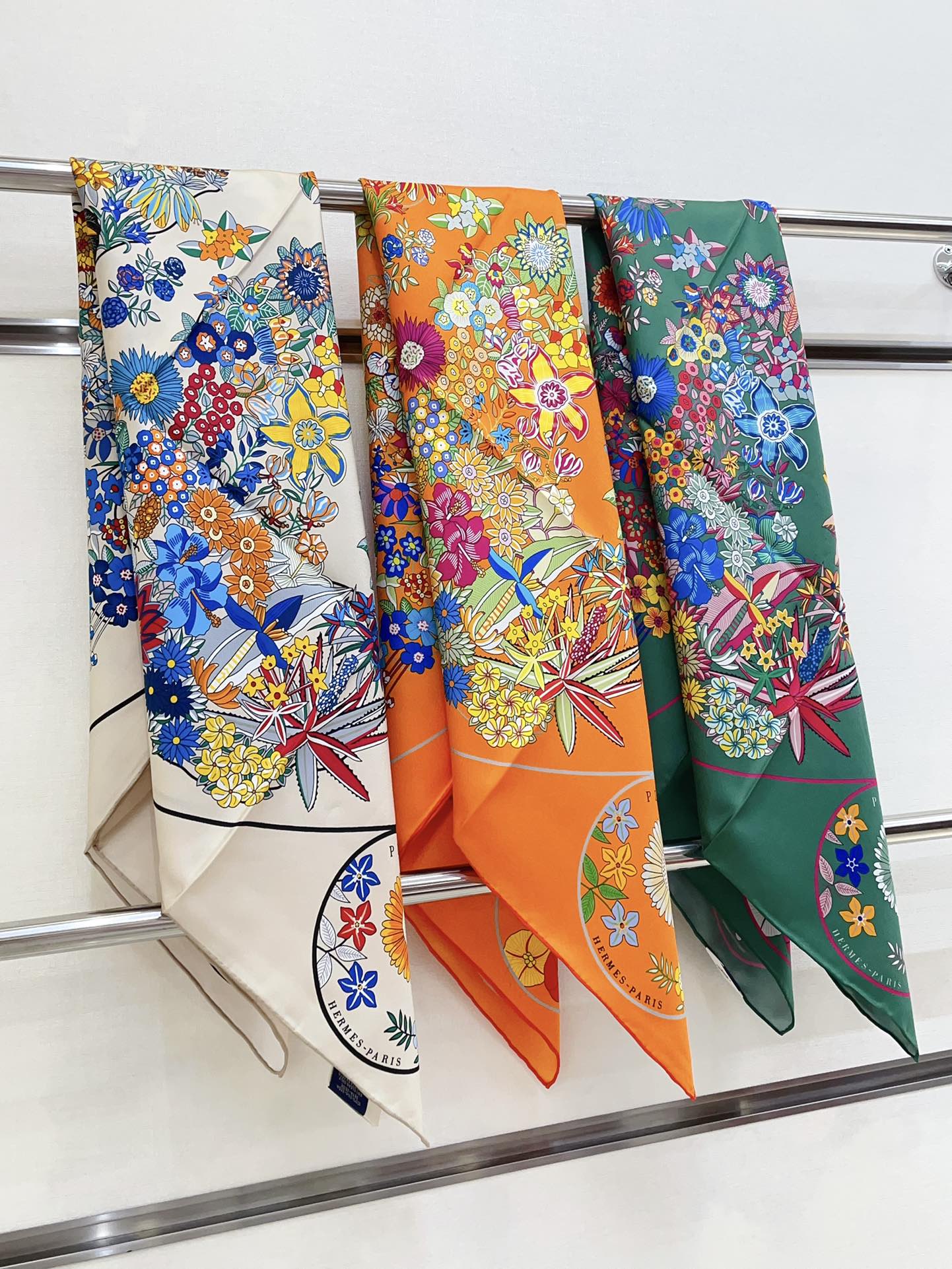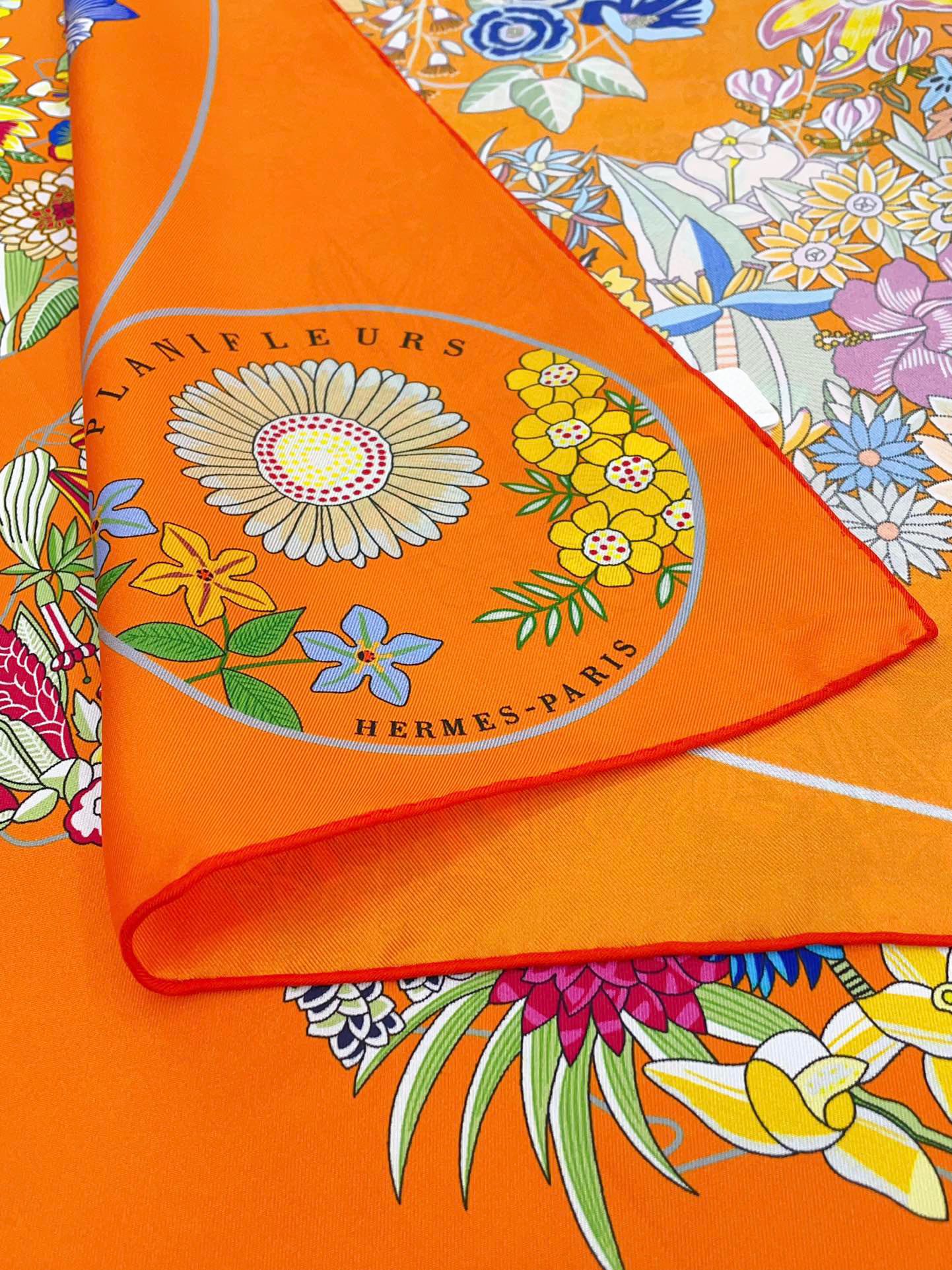 Planifleurs scarf 90 CM In Orange Colorful Silk Twill 249919