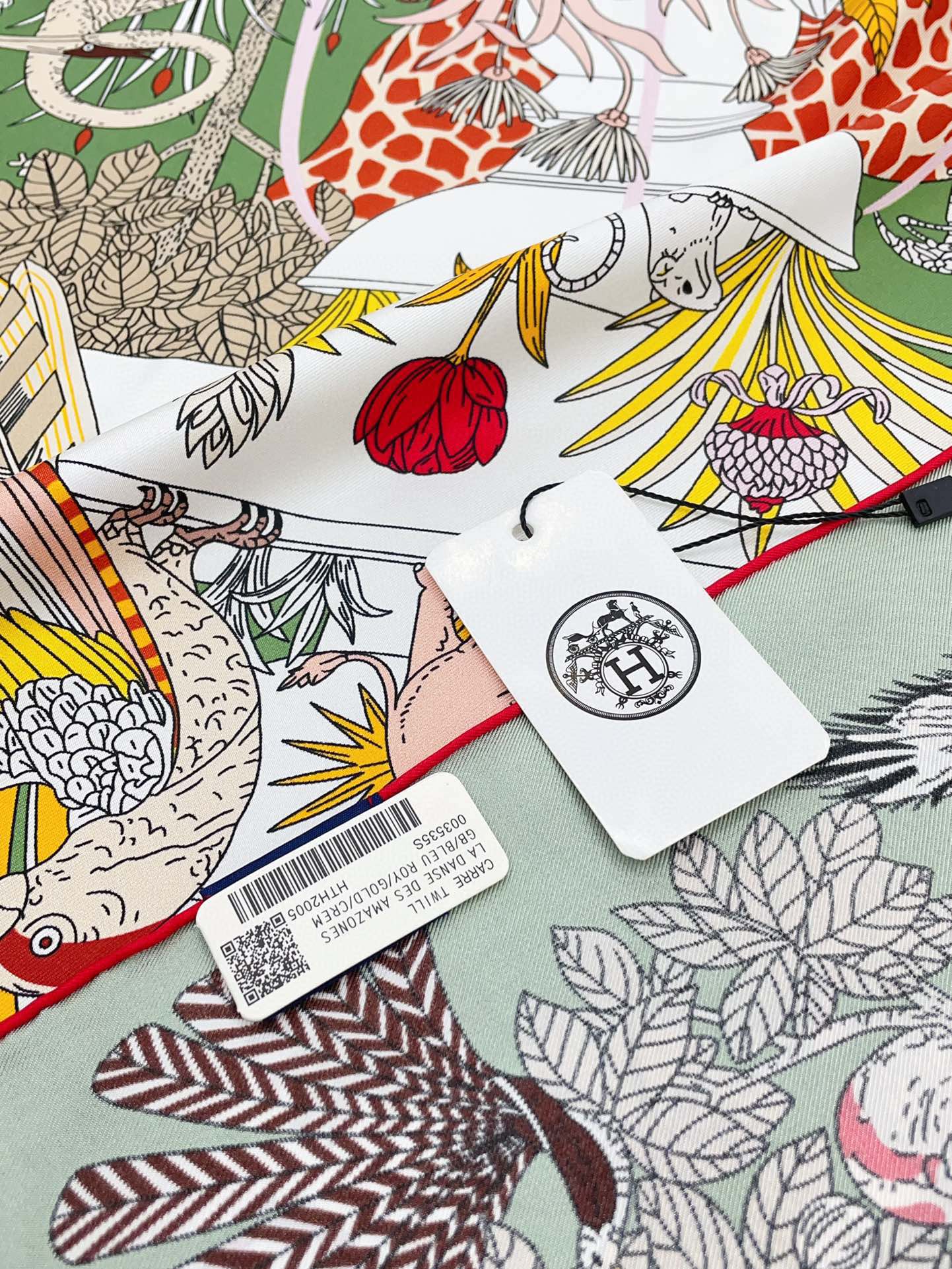 Precious Paradise Scarf 90 CM In Green Colorful Silk Twill 294486