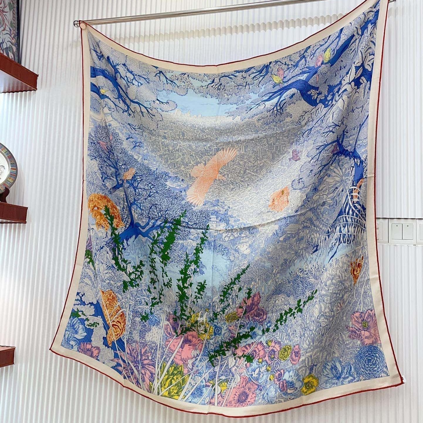 Retour A La Nature Shawl 140CM In Dakr Blue Colorful Cashmere And Silk