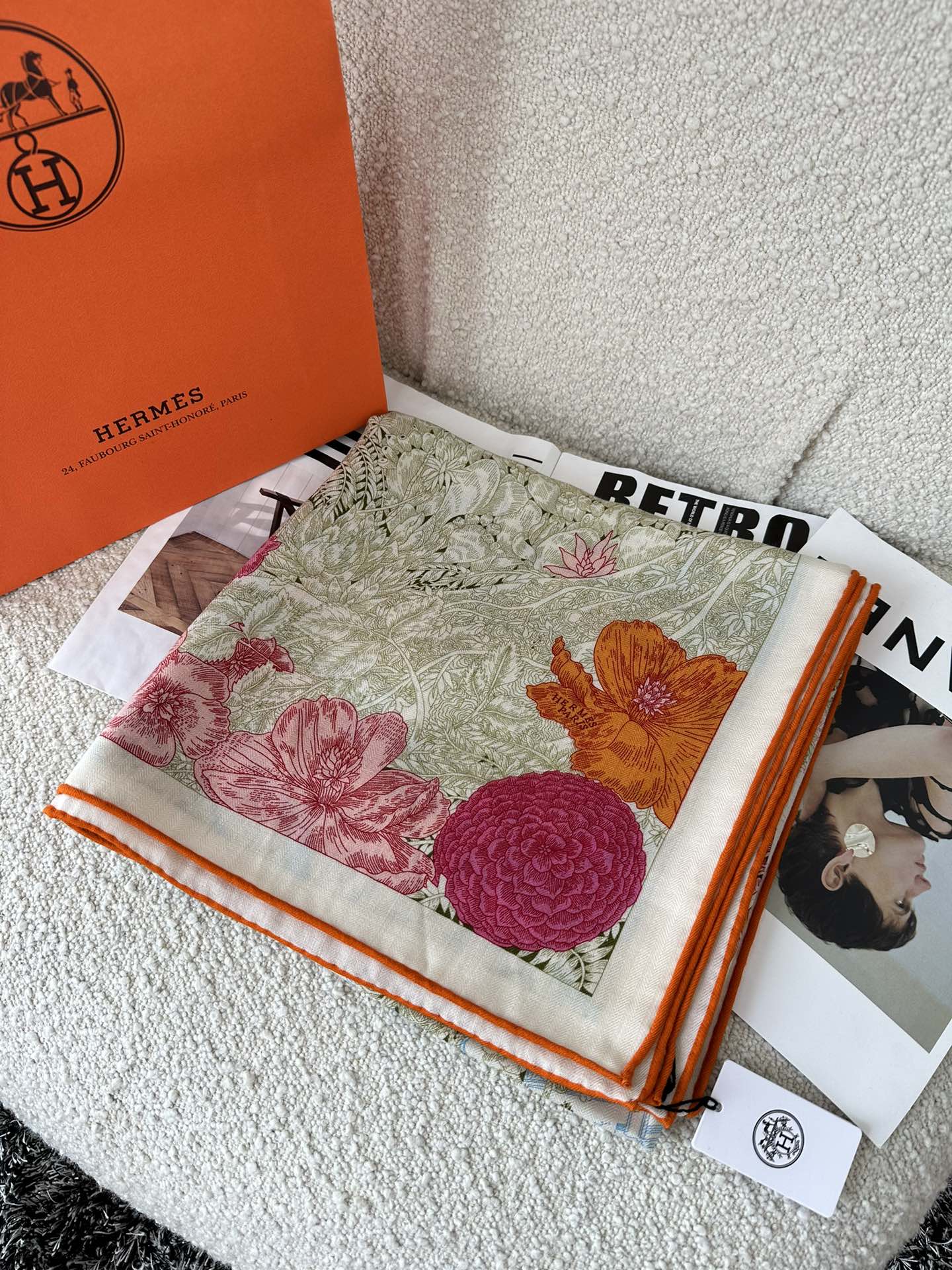 Retourala Nature Hermes Scarf 140 CM Green Gray Colorful Silk