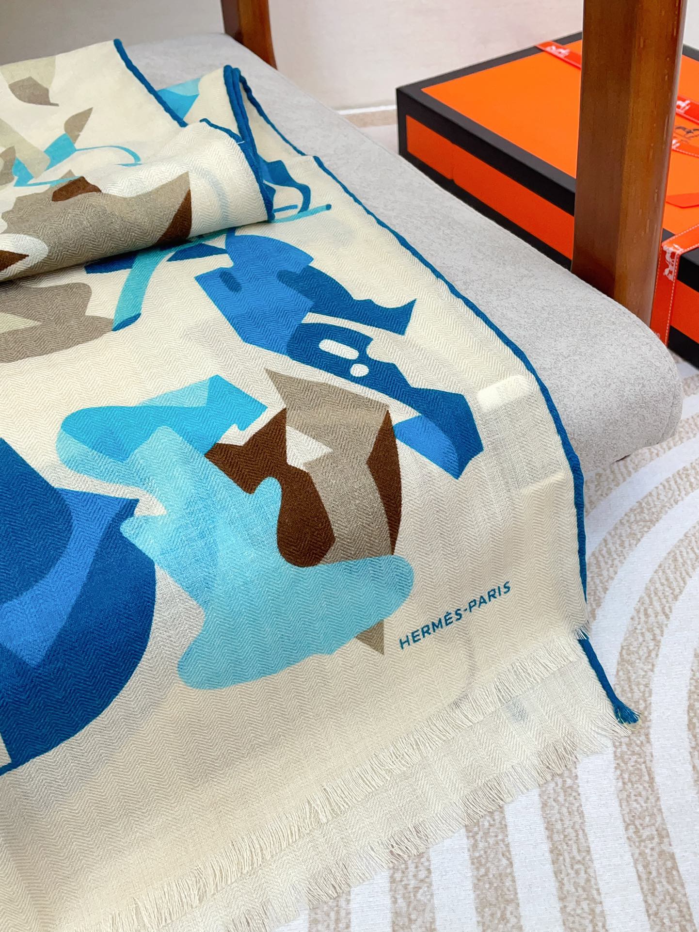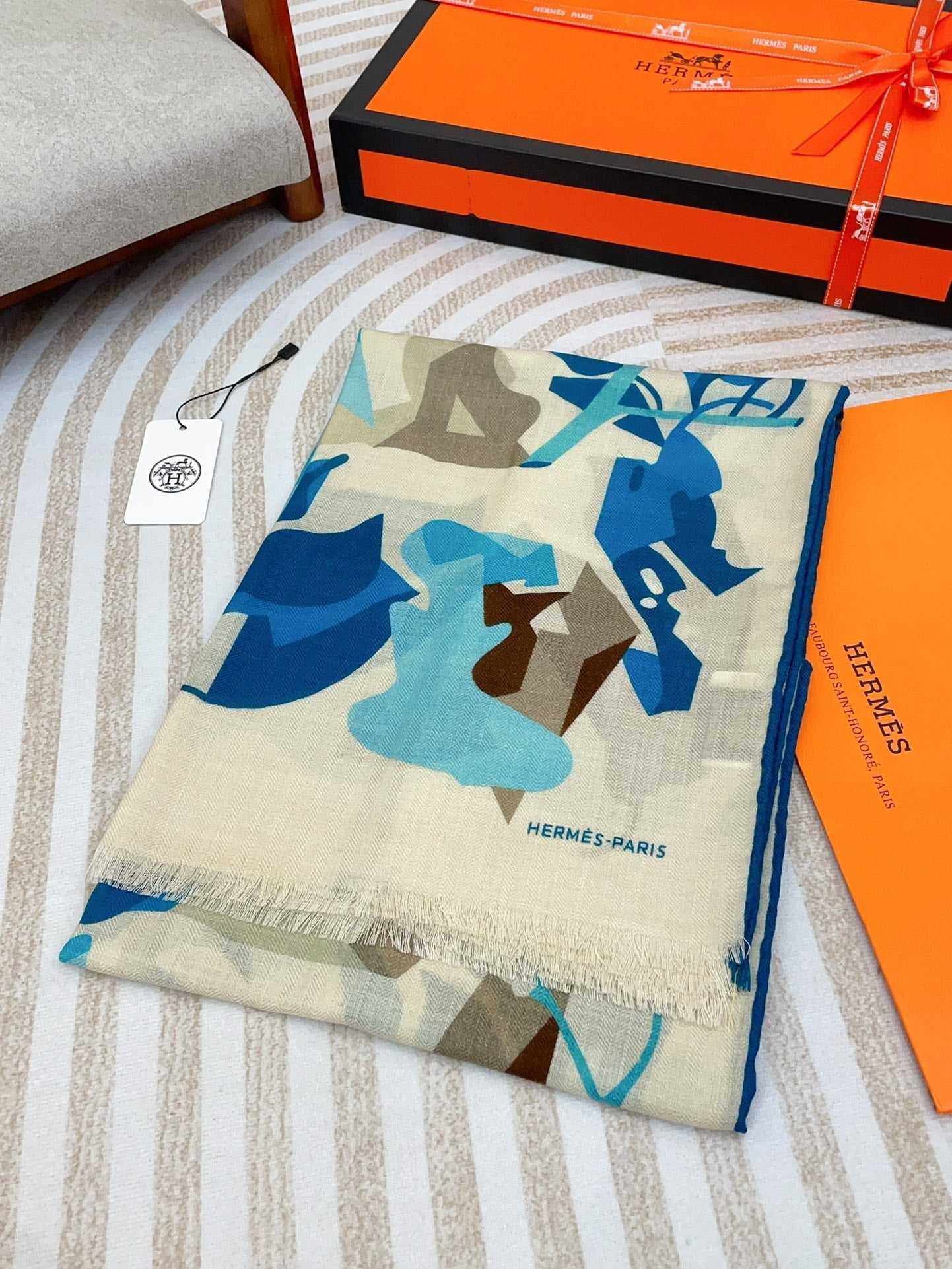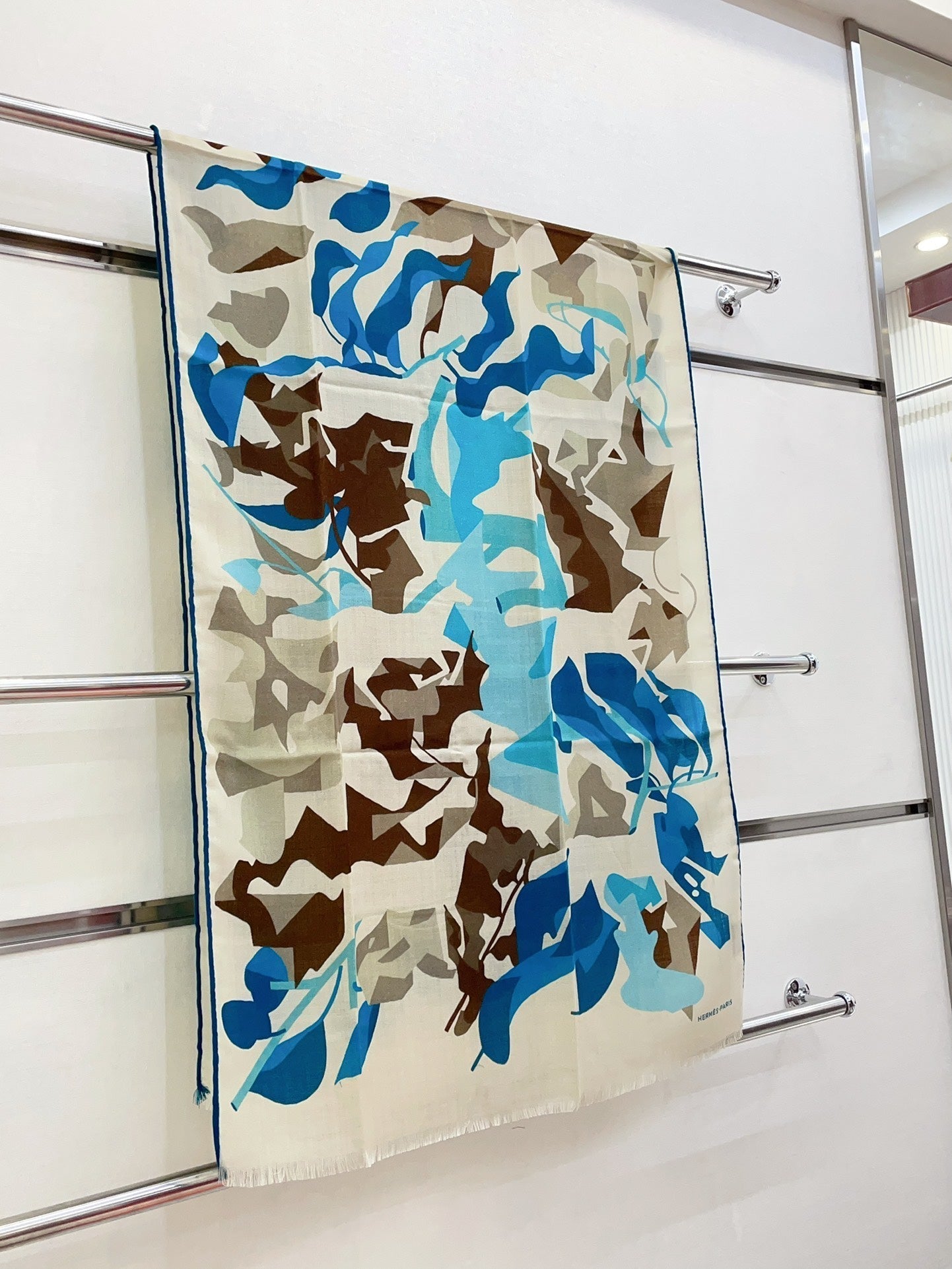 Scarf 180 CM Khaki Green Colorful Mashmere And Silk 403884