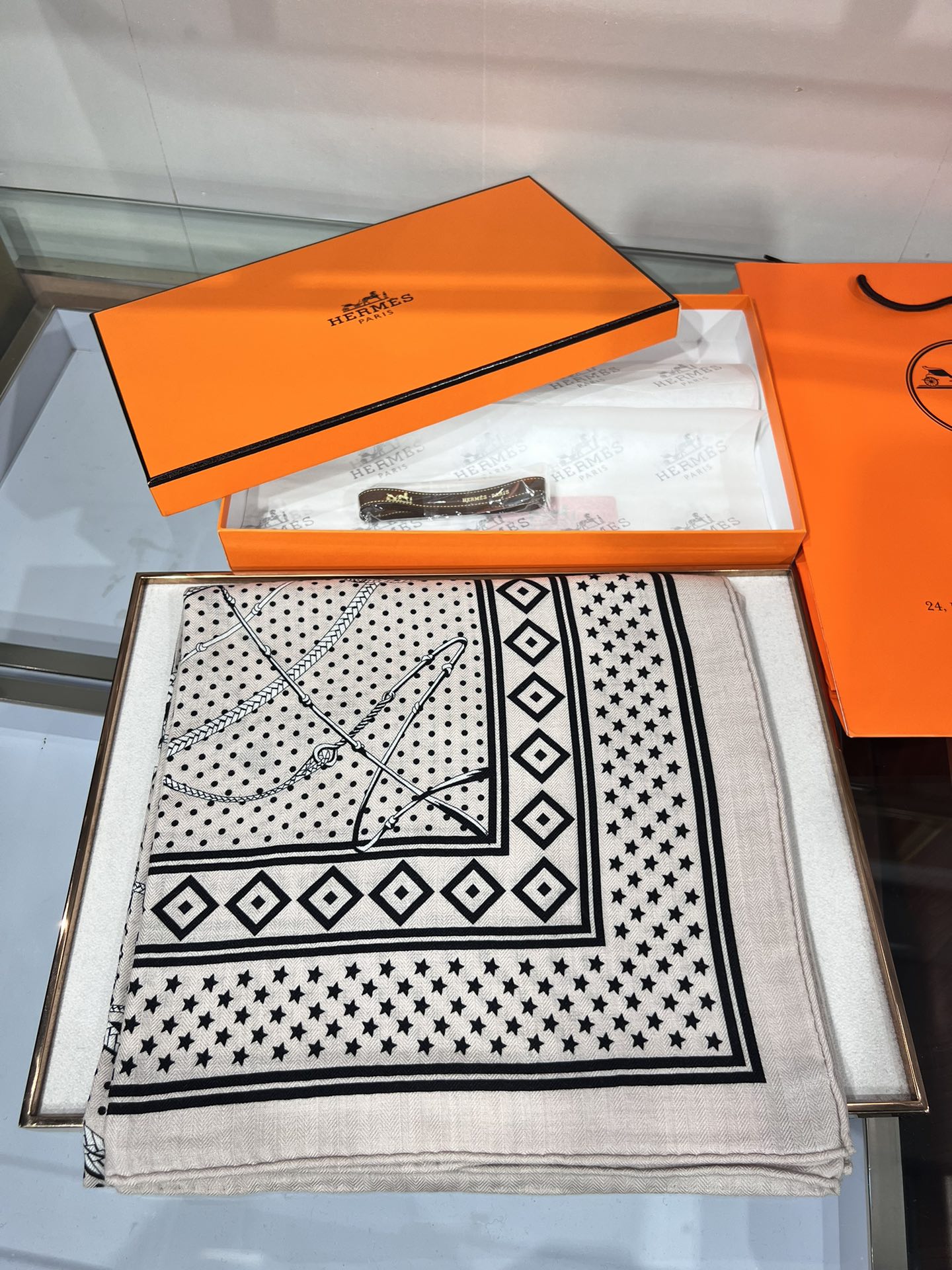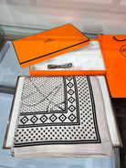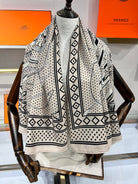 SCARF 140 CM IN WHITE MIX BLACK CASHMERE AND SILK 379766