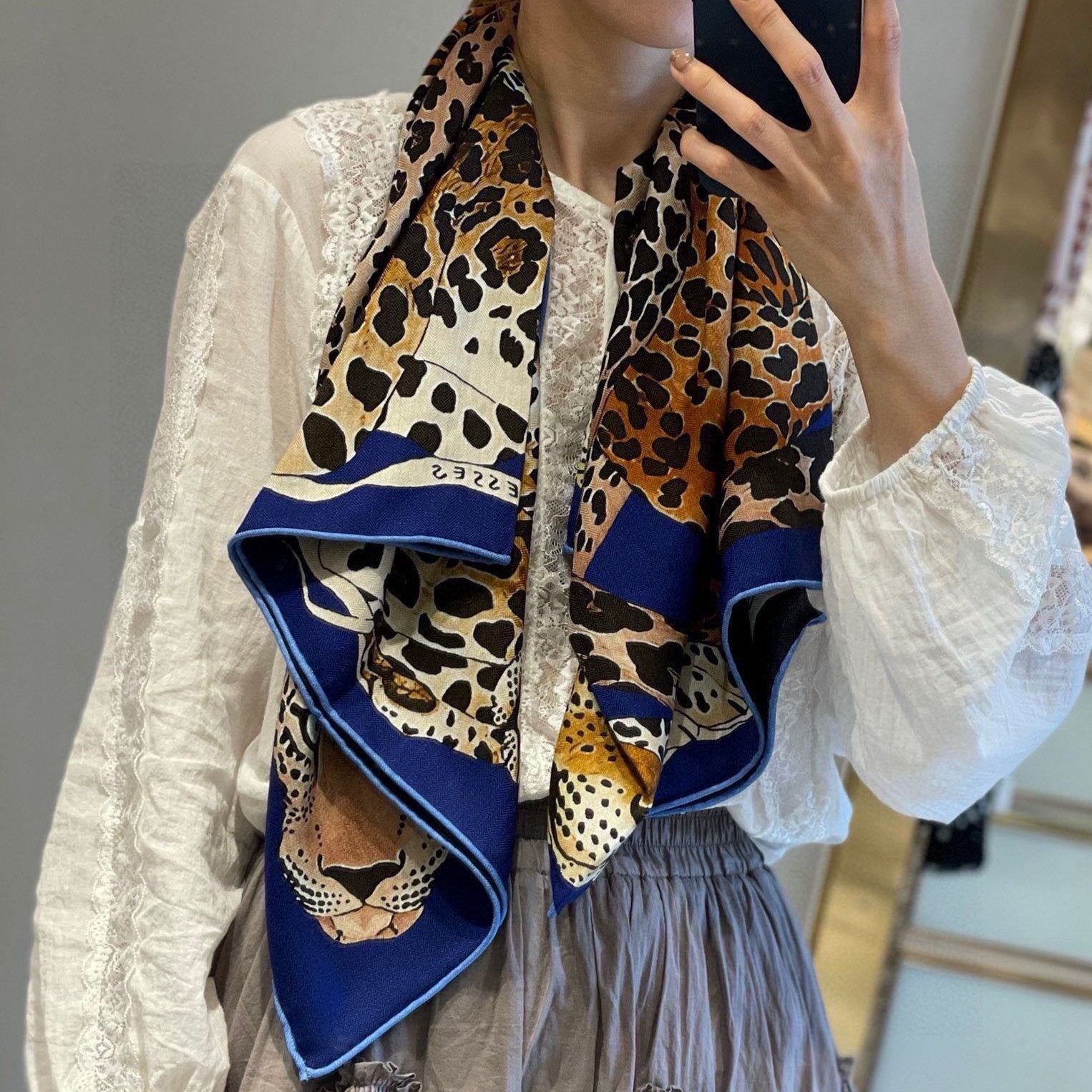 Lazy Leopardesses Scarf 110 CM In Colorful Cashmere Silk 311599